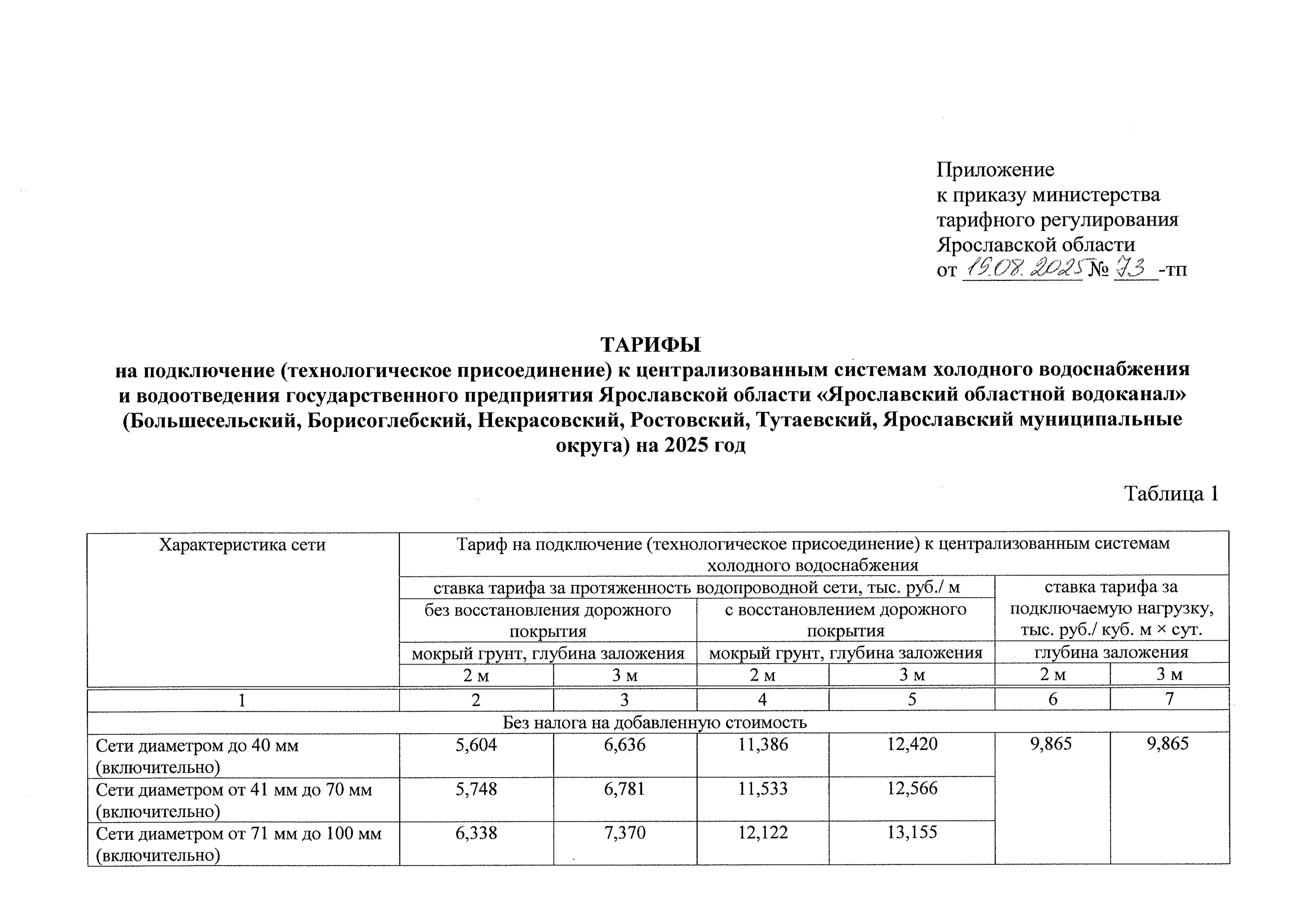 Приказ министерства тарифного регулирования Ярославской области от 19.08.2025 № 73-тп
