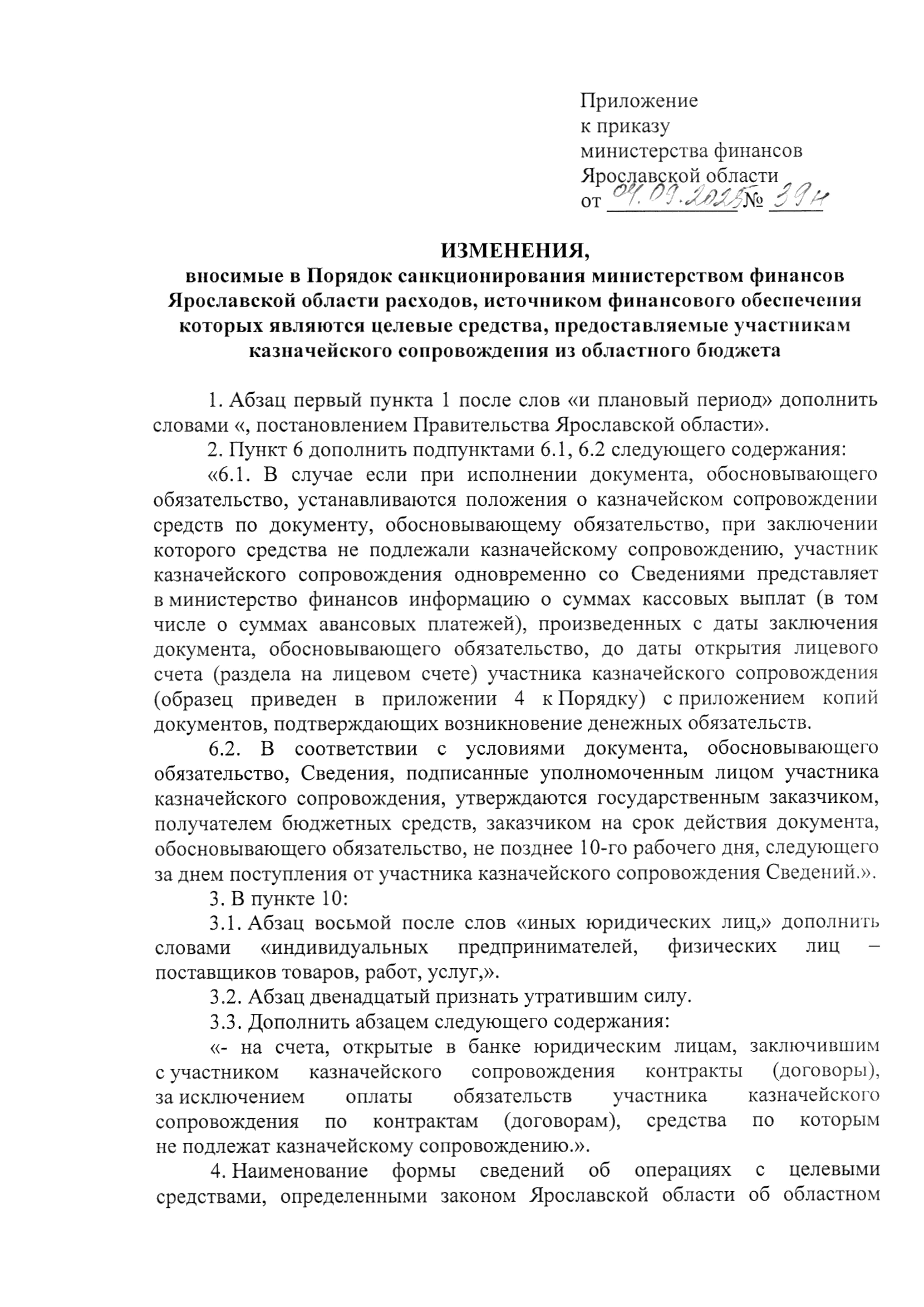 Приказ министерства финансов Ярославской области от 04.09.2025 № 39н