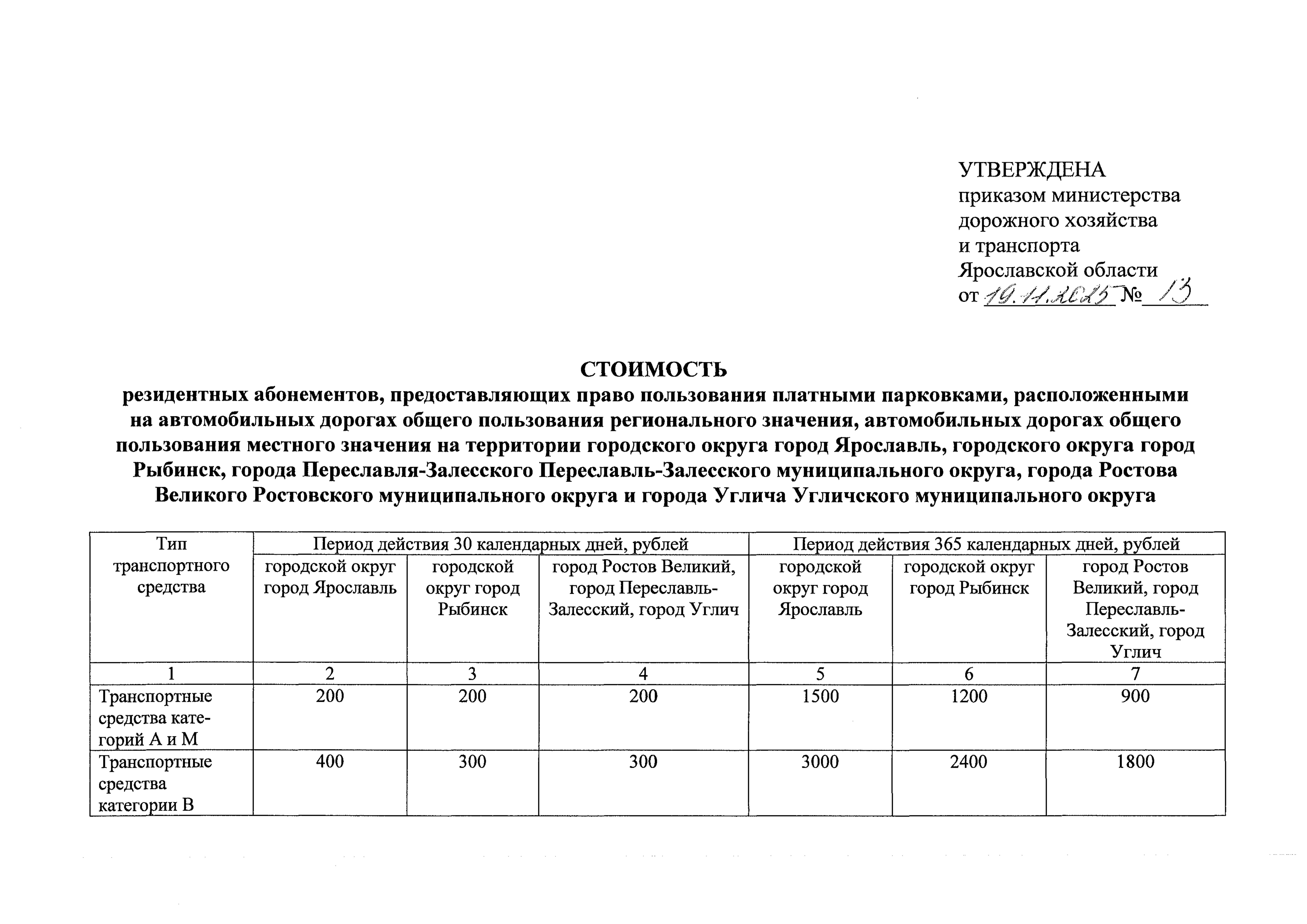 Приказ министерства дорожного хозяйства и транспорта Ярославской области от 19.11.2025 № 13