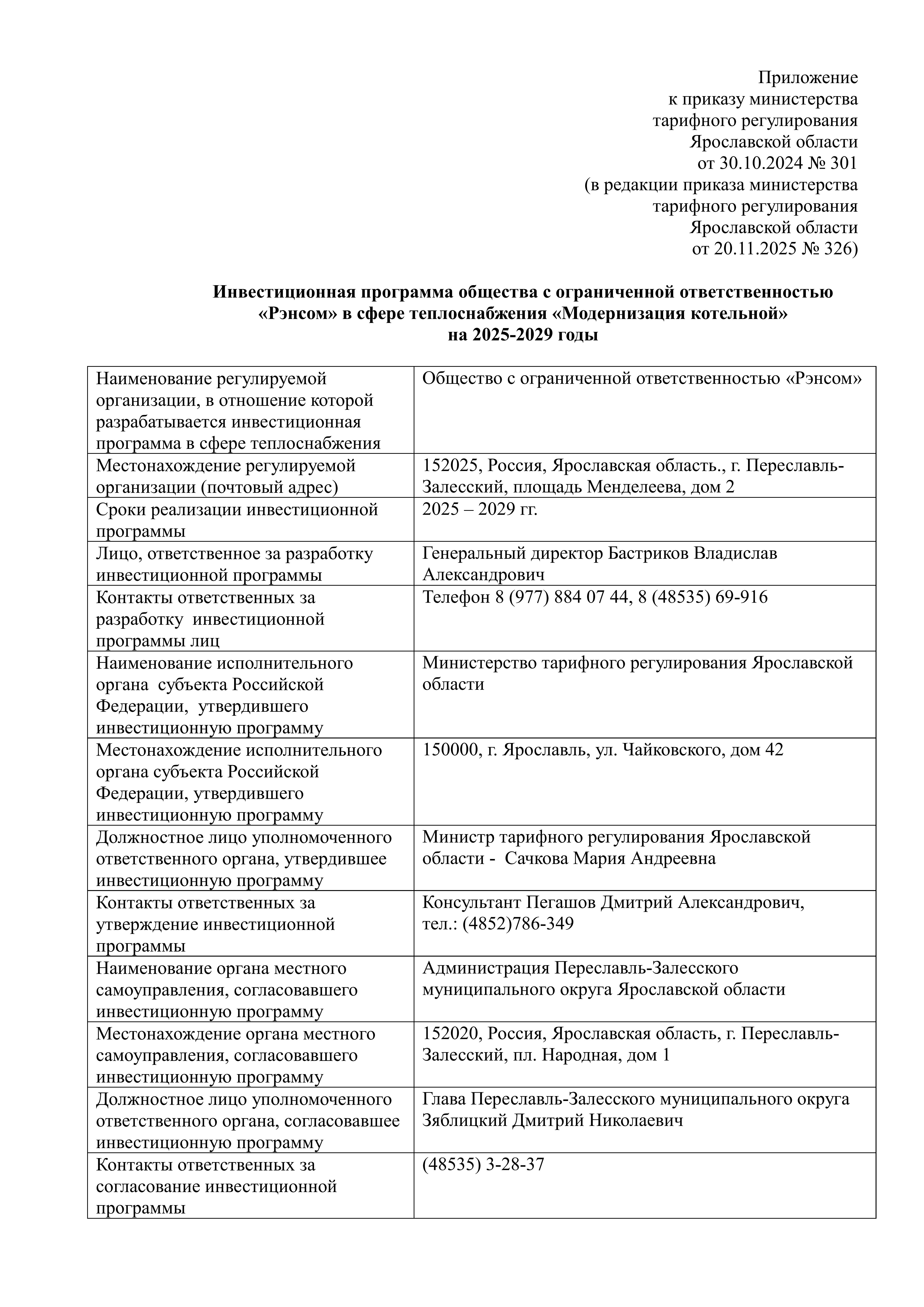 Приказ министерства тарифного регулирования Ярославской области от 20.11.2025 № 326