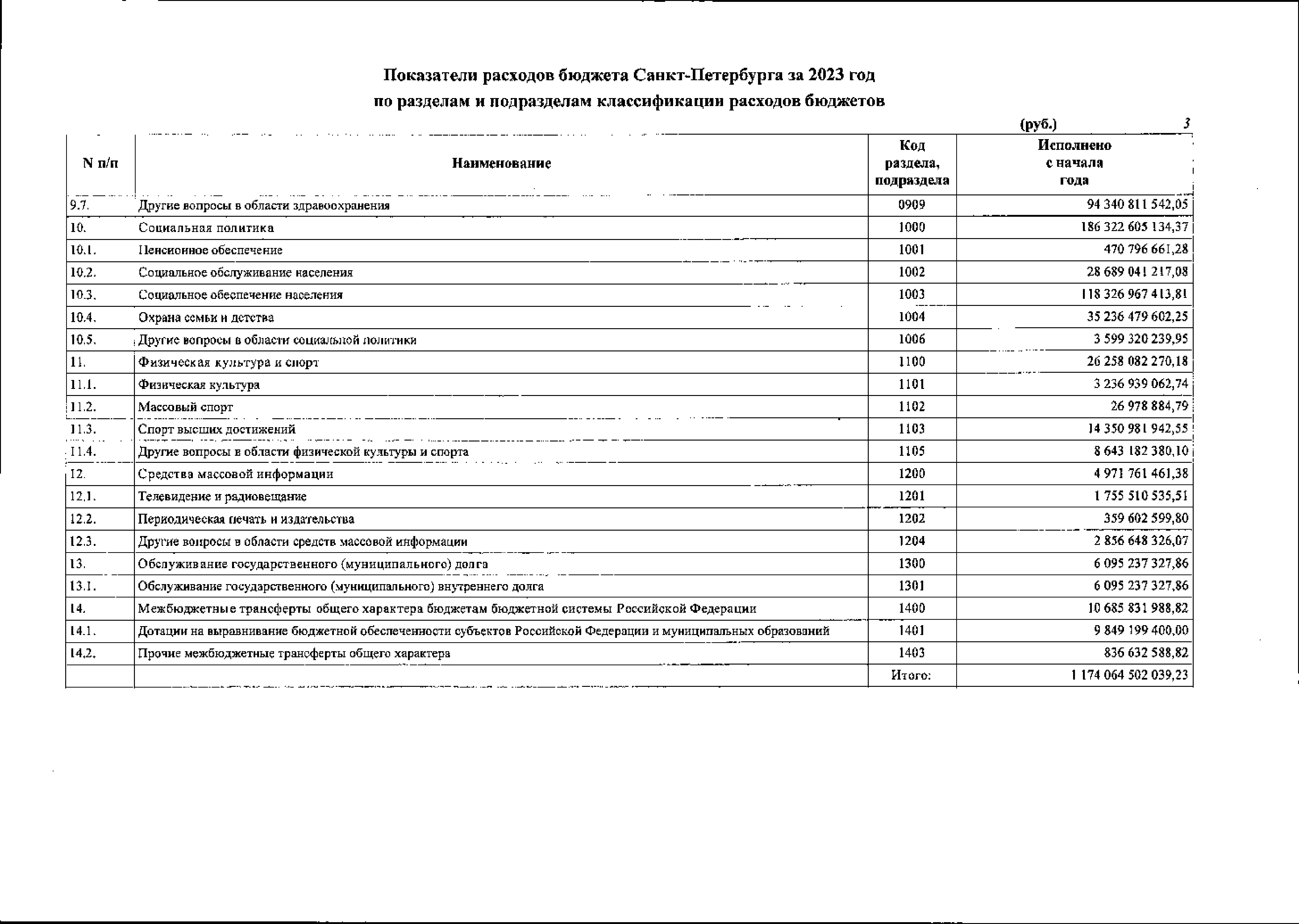 "Об исполнении бюджета Санкт-Петербурга за 2023 год (принят Законодательным Собранием Санкт-Петербурга 26.06.2024, подписан Губернатором Санкт-Петербурга 09.07.2024)"