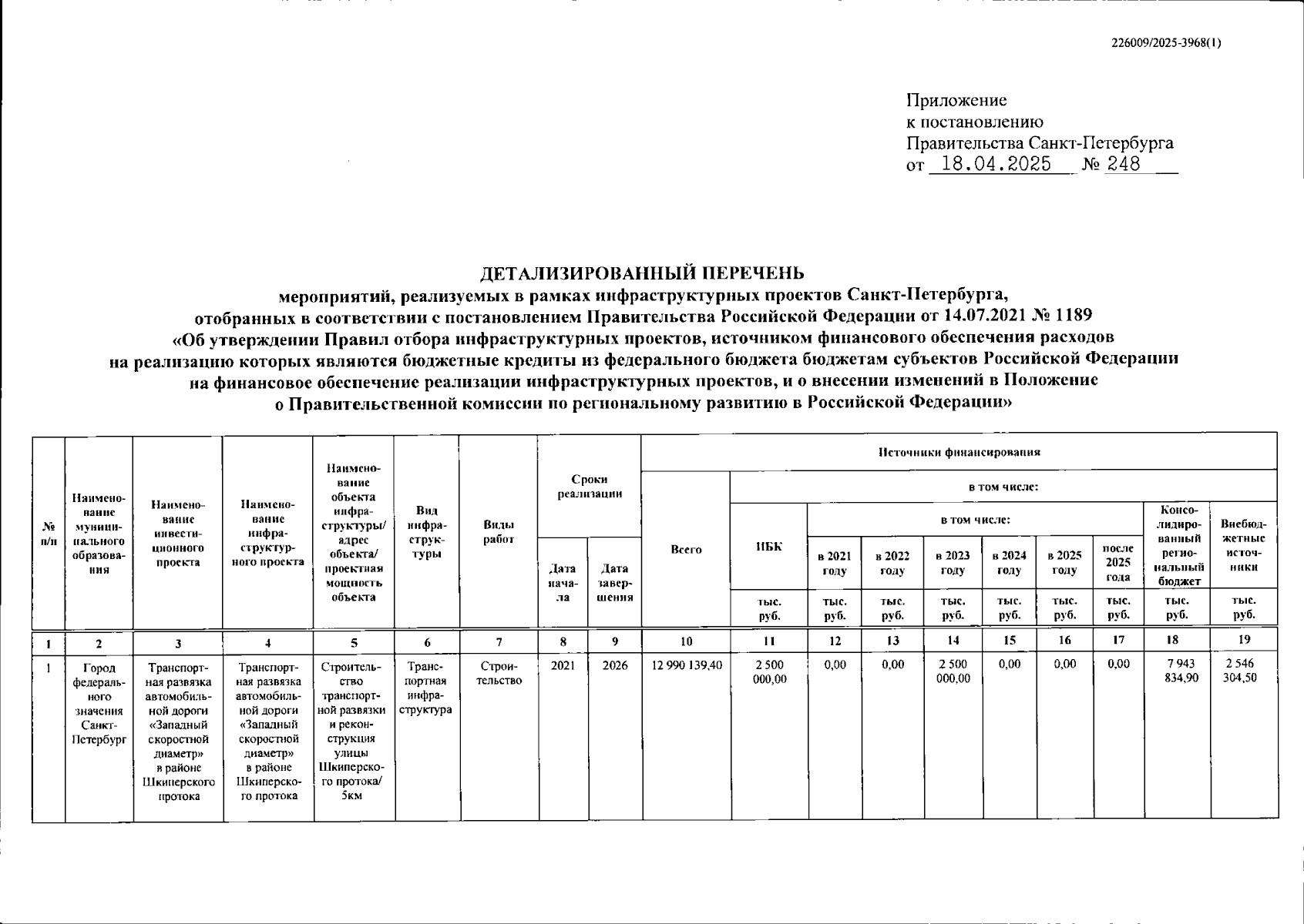 Постановление Правительства Санкт-Петербурга от 18.04.2025 № 248