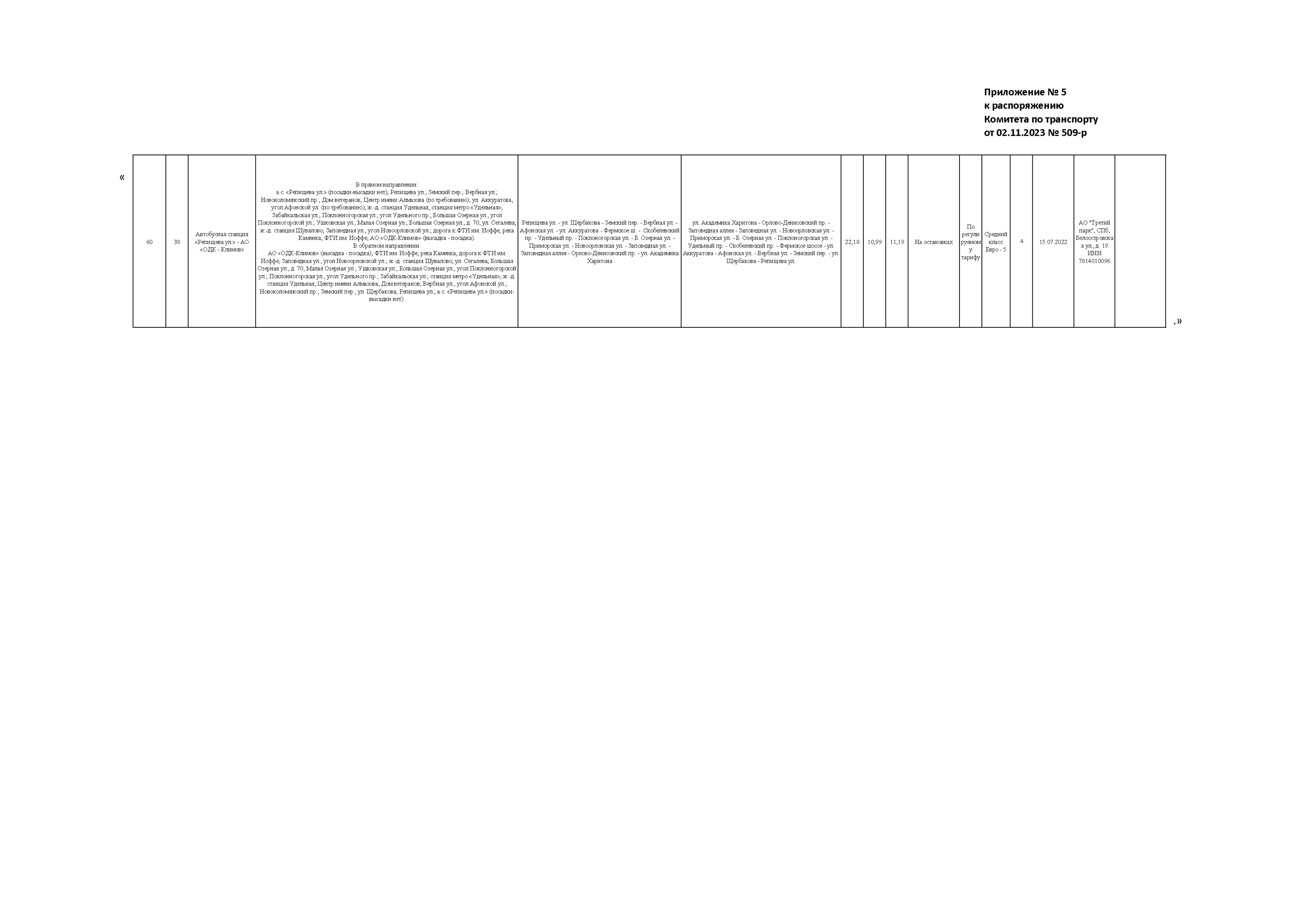 Распоряжение Комитета по транспорту Санкт-Петербурга от 02.11.2023 № 509-р
