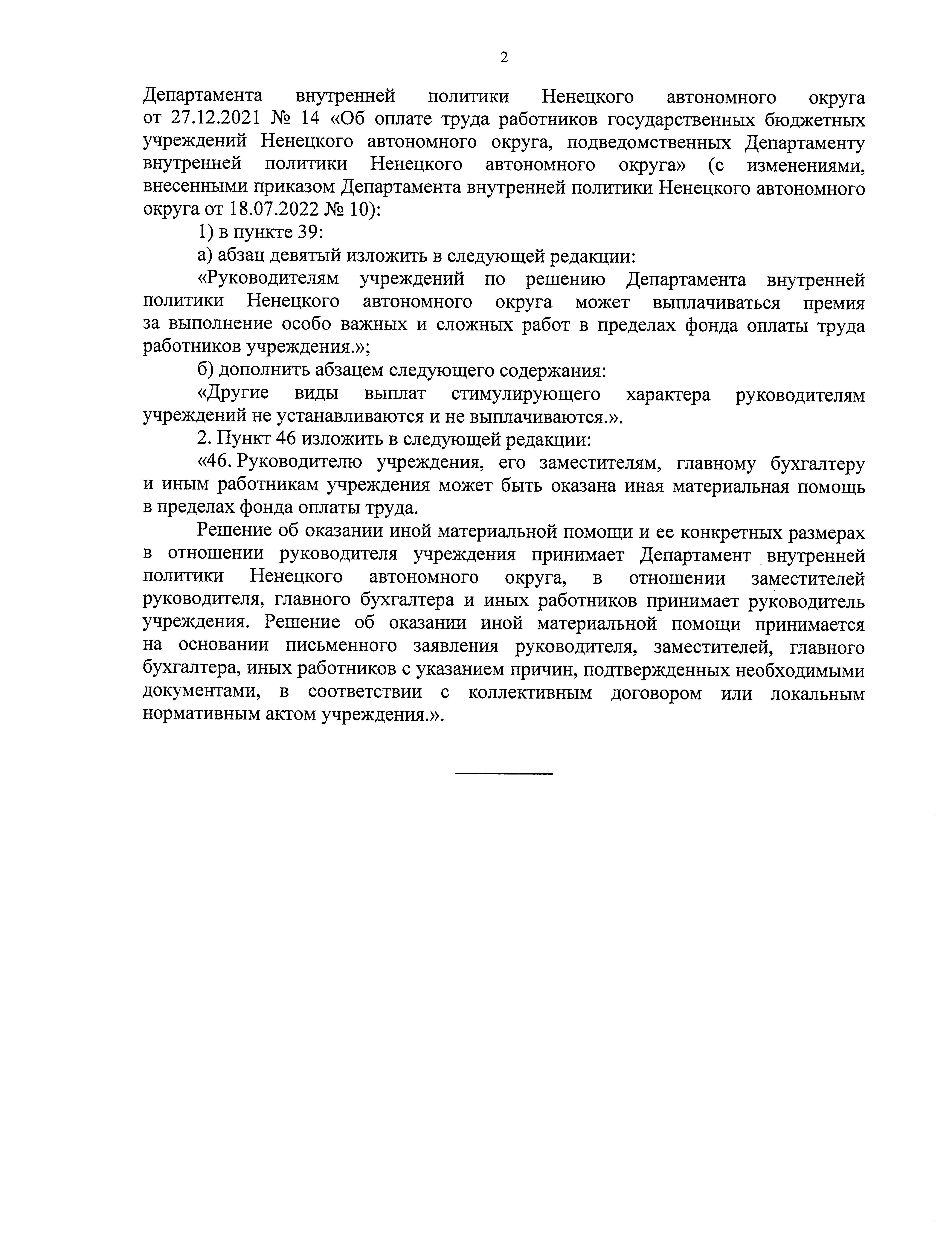 Приказ Департамента внутренней политики Ненецкого автономного округа от 25.10.2022 № 14