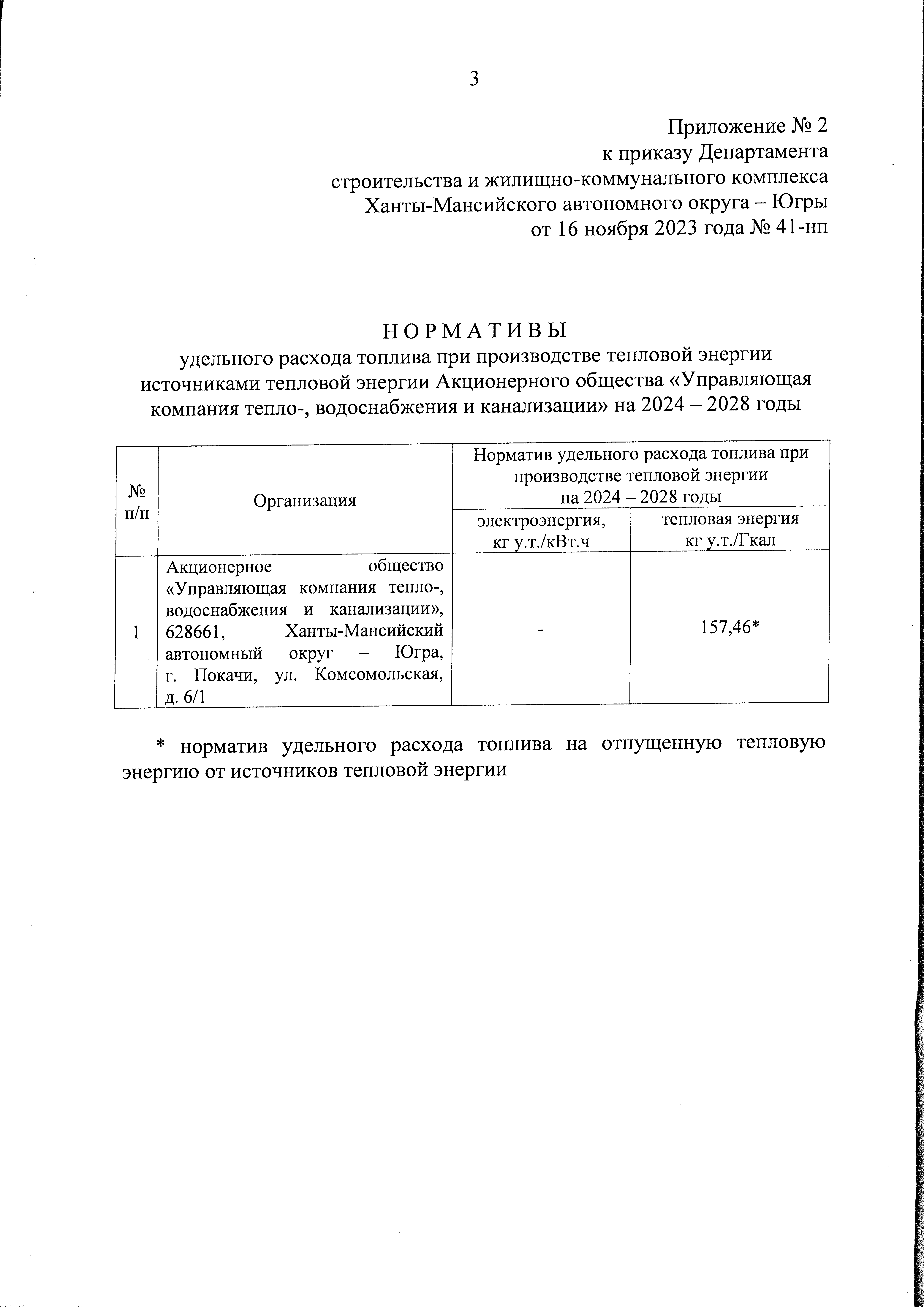 "Об утверждении нормативов технологических потерь при передаче тепловой энергии, теплоносителя по тепловым сетям, нормативов удельного расхода топлива при производстве тепловой энергии источниками тепловой энергии, Акционерного общества "Управляющая компания тепло-, водоснабжения и канализации" на 2024 - 2028 годы"