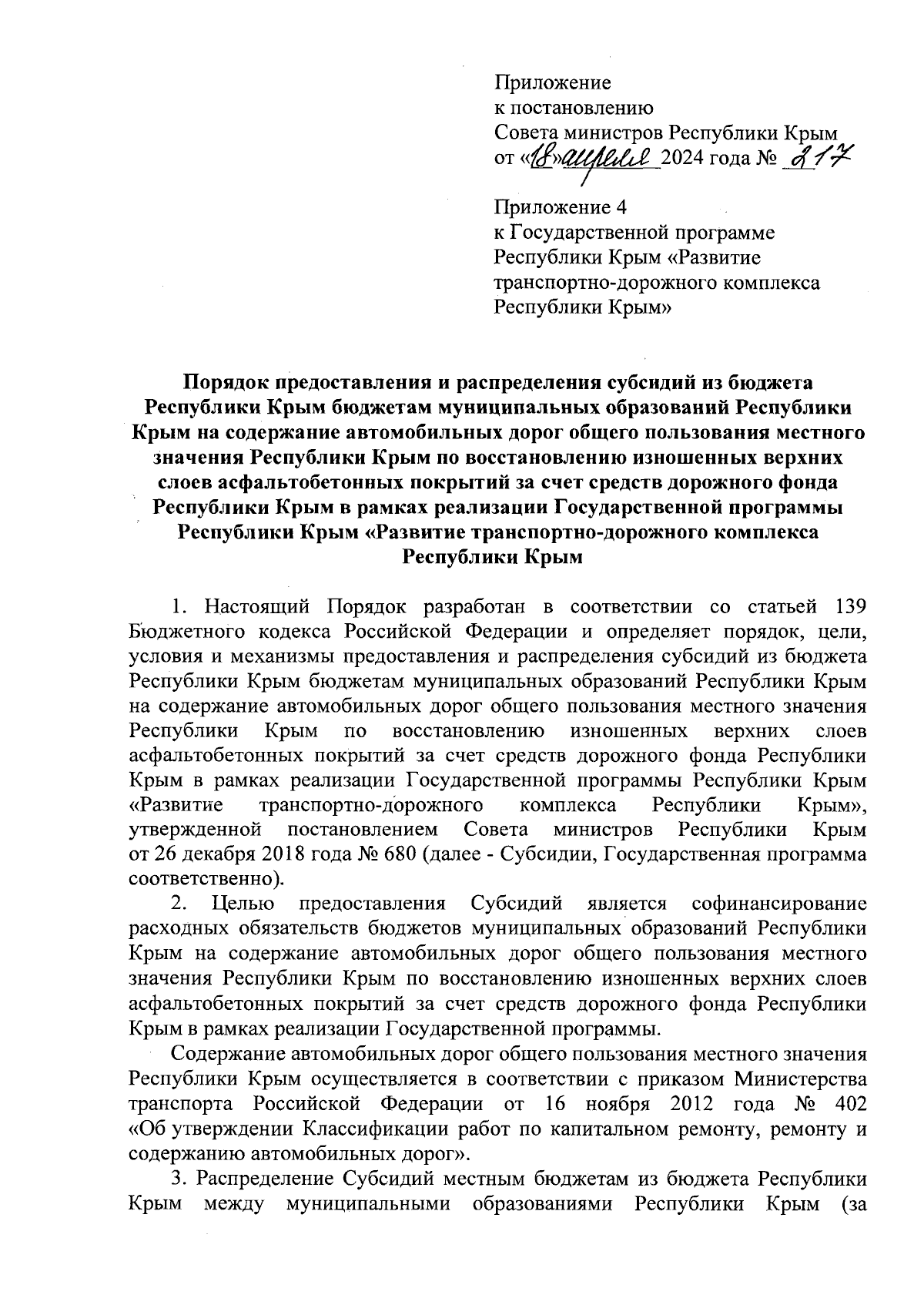 Постановление Совета министров Республики Крым от 18.04.2024 № 217