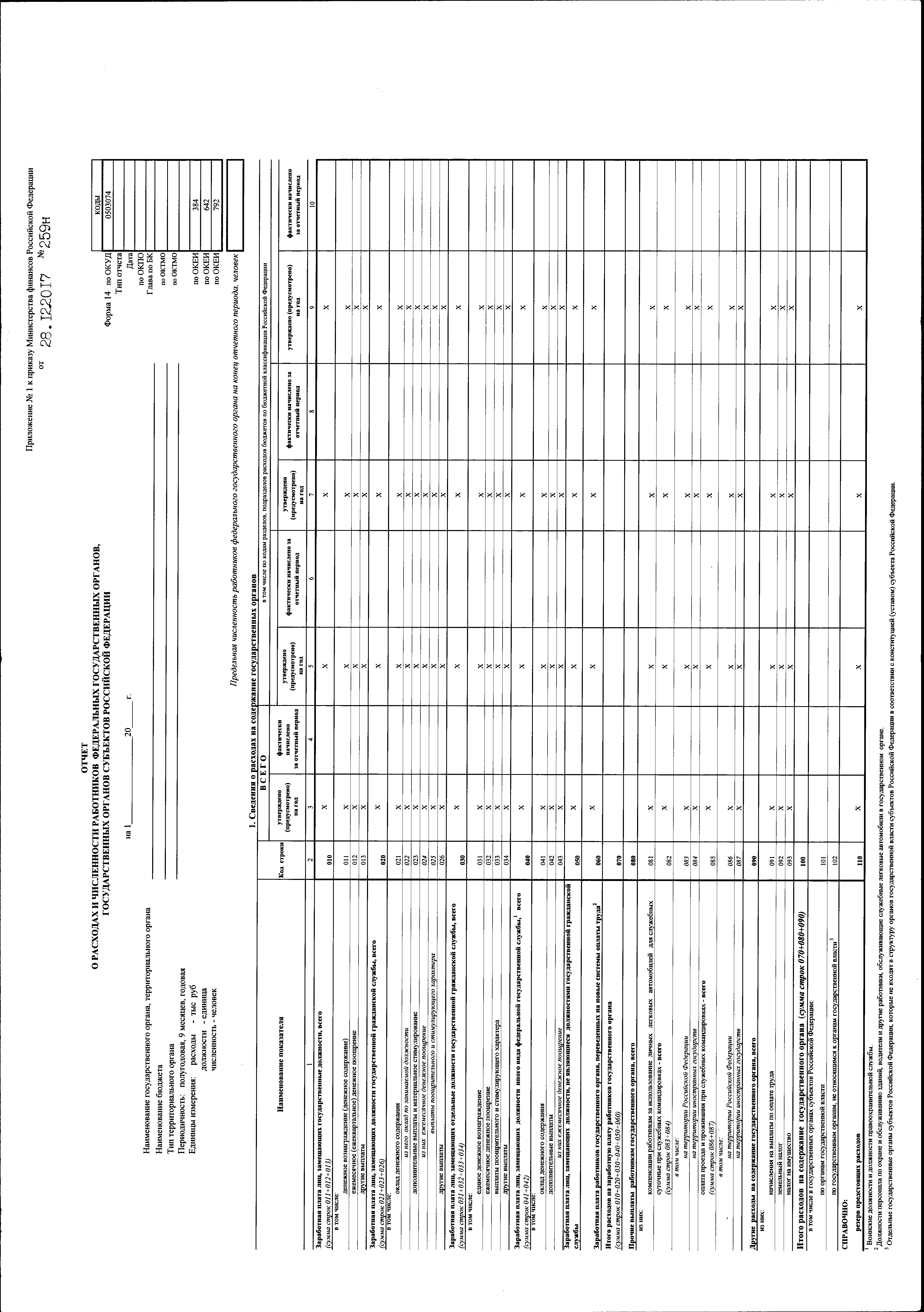Приказ Министерства финансов Российской Федерации от 28.12.2017 № 259н