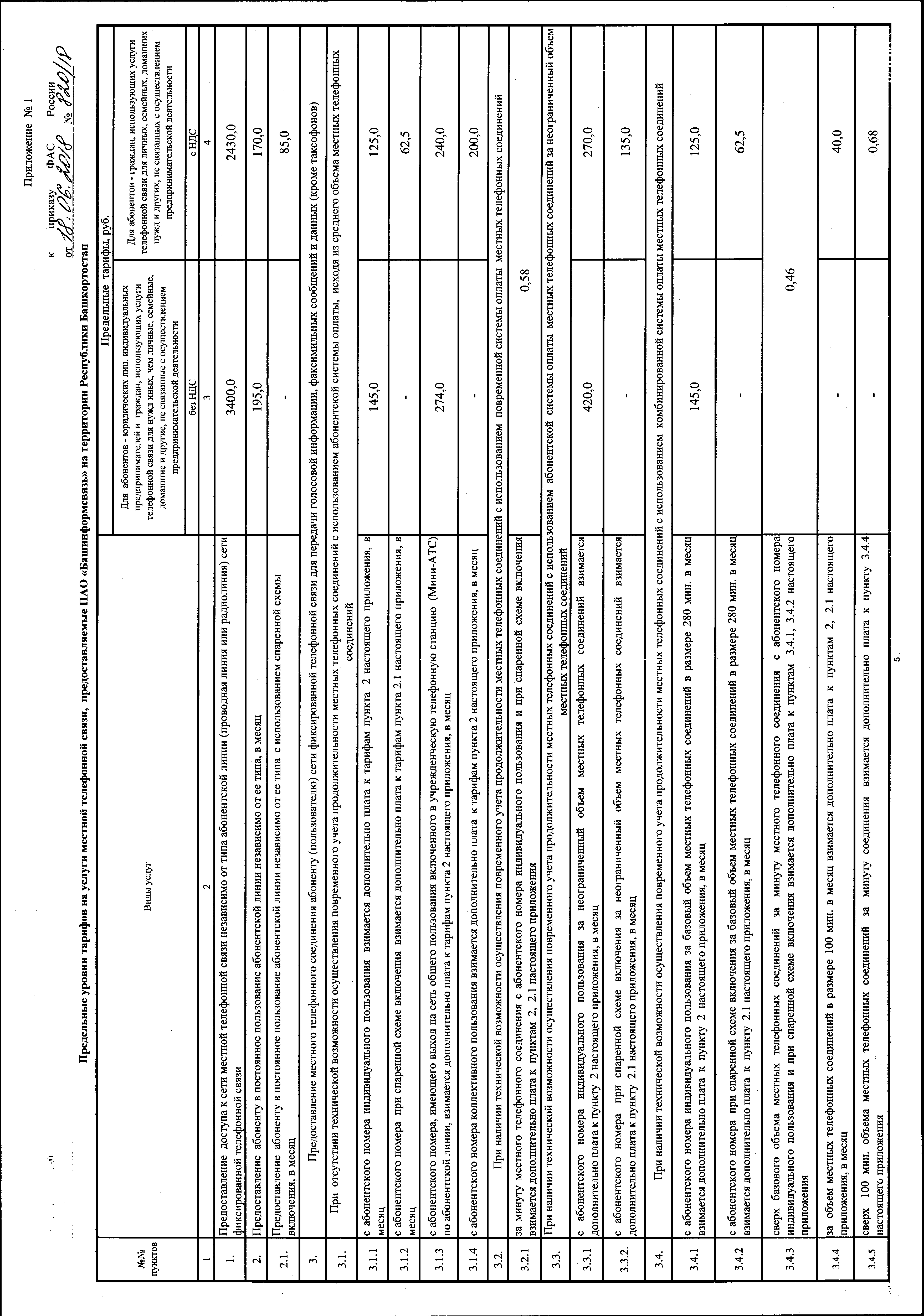 "Об утверждении тарифов на услуги местной, внутризоновой телефонной связи и на услугу по передаче внутренней телеграммы, предоставляемые ПАО "Башинформсвязь" на территории Республики Башкортостан"