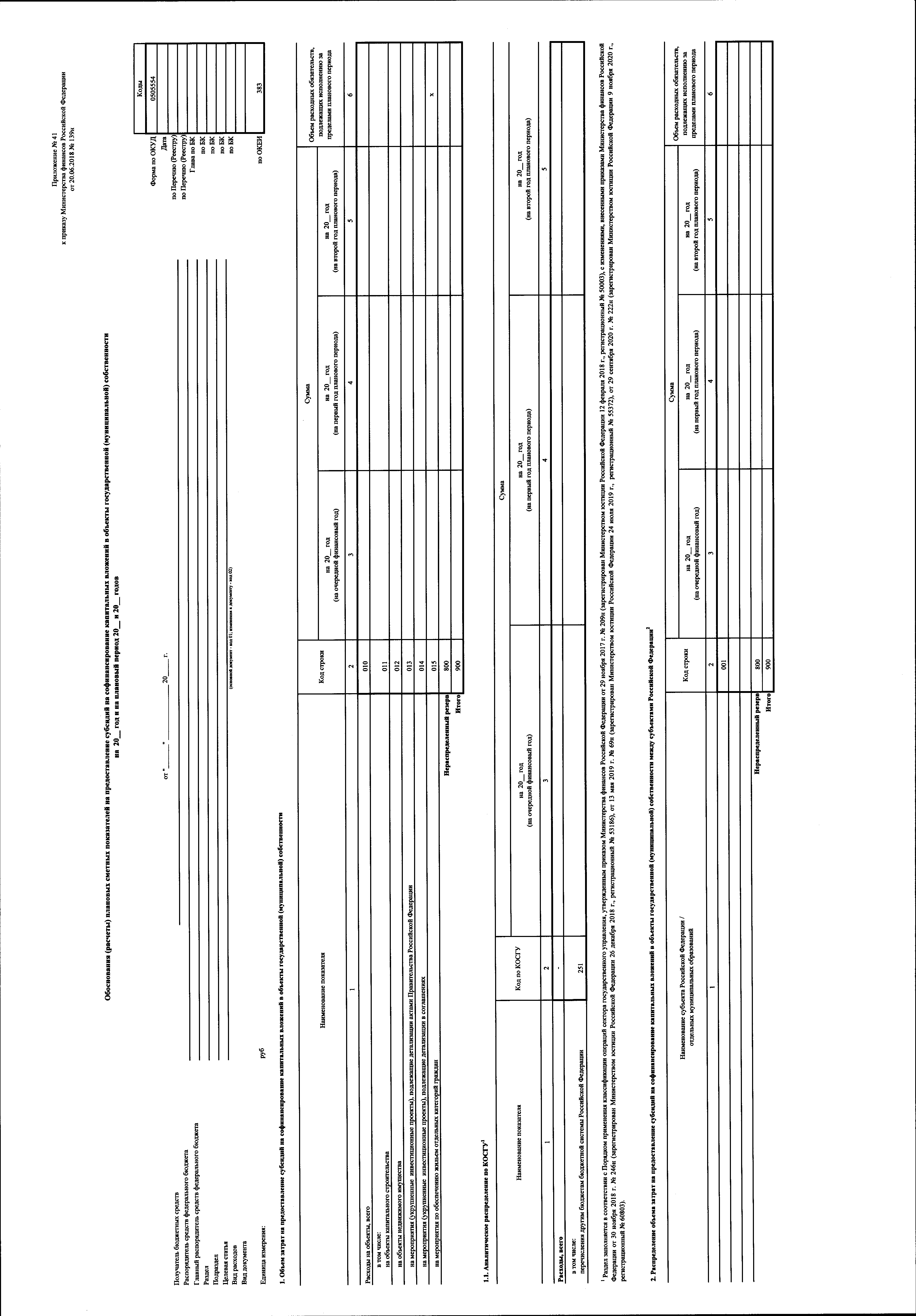 "О внесении изменений в приказ Министерства финансов Российской Федерации от 20 июня 2018 г. № 139н "Об утверждении форм обоснований (расчетов) плановых сметных показателей, применяемых при составлении и ведении бюджетных смет федеральных казенных учреждений"