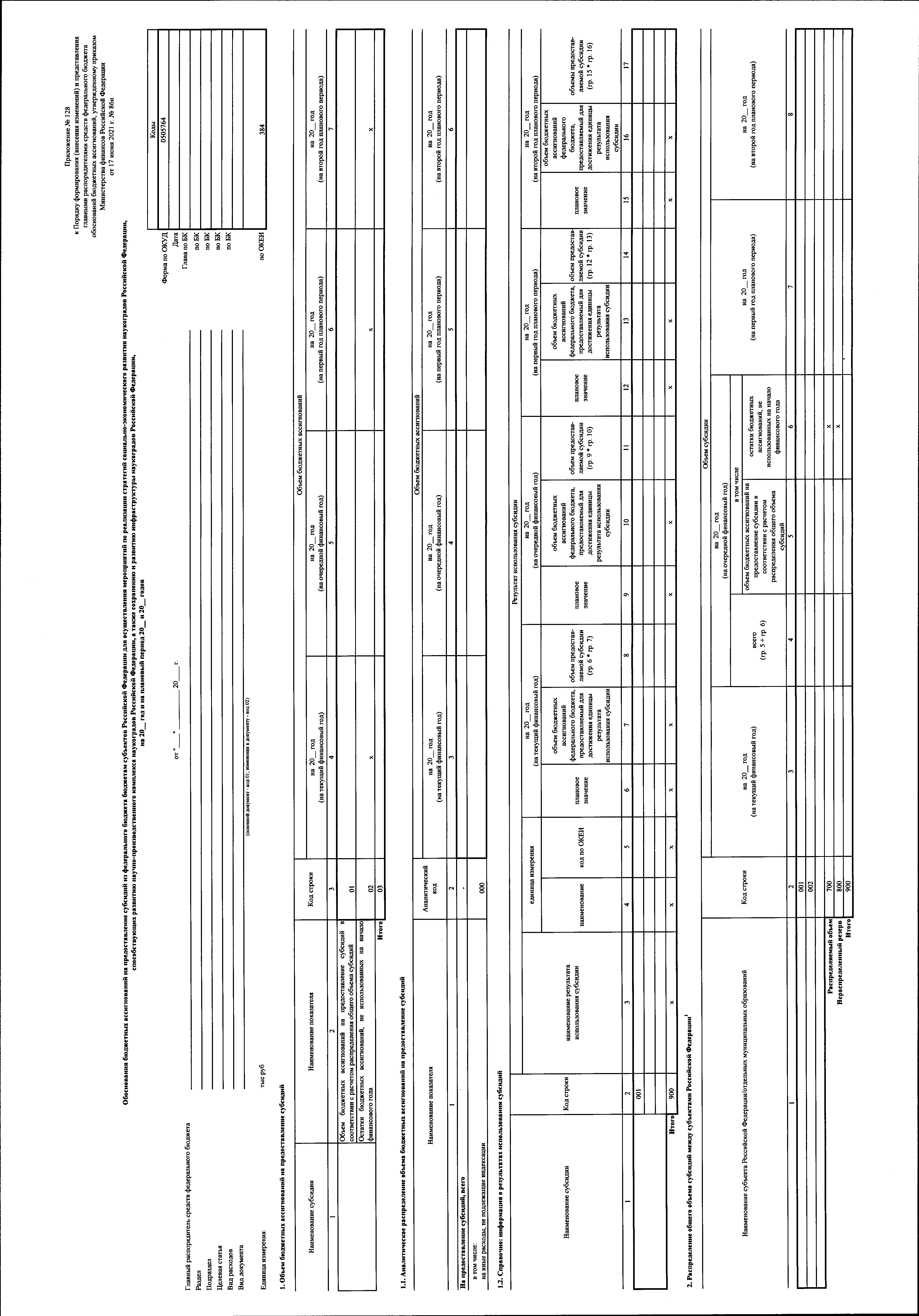 "О внесении изменений в Порядок формирования (внесения изменений) и представления главными распорядителями средств федерального бюджета обоснований бюджетных ассигнований, утвержденный приказом Министерства финансов Российской Федерации от 17 июня 2021 г. № 86н"