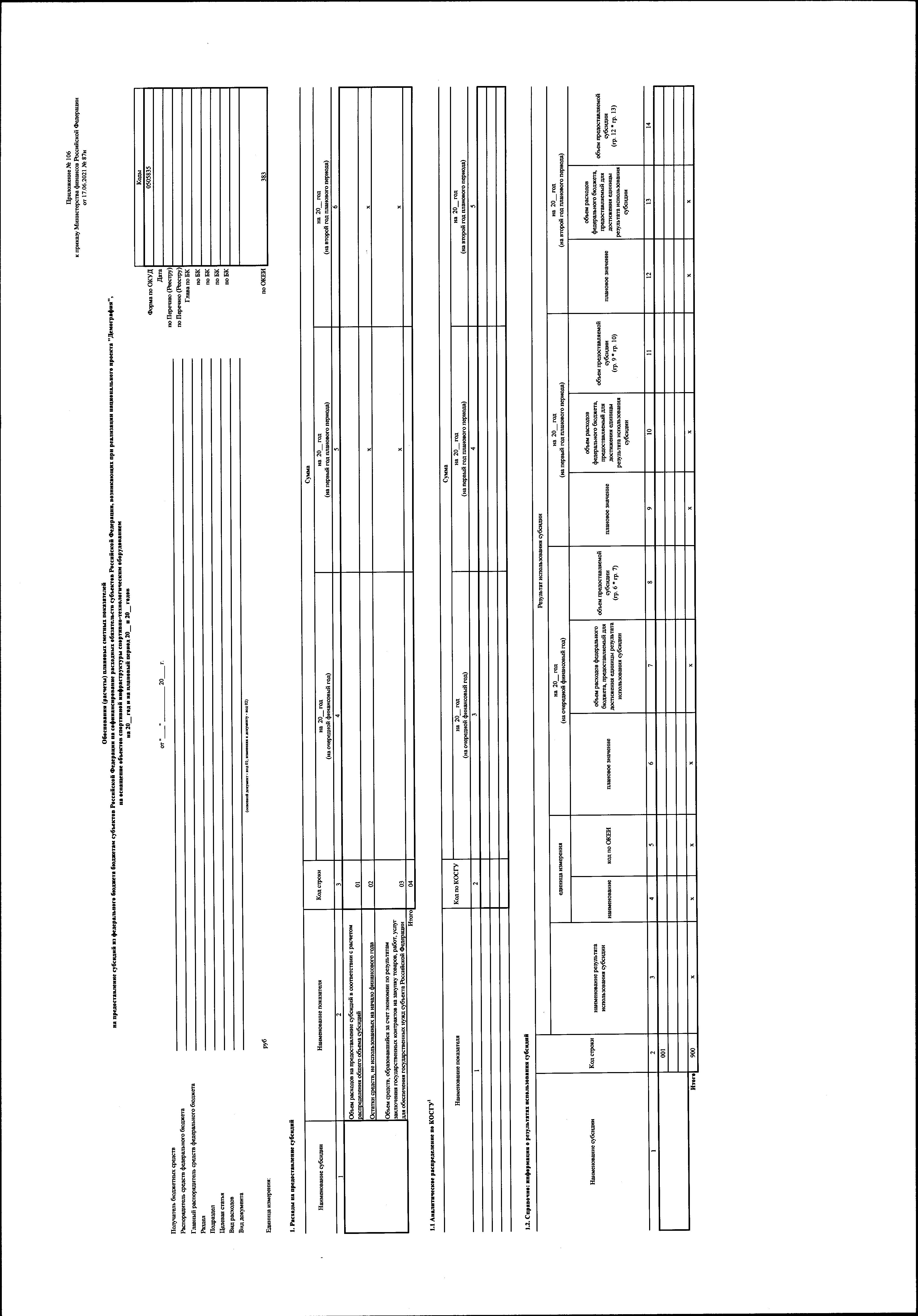 "О внесении изменений в приказ Министерства финансов Российской Федерации от 17 июня 2021 г. № 87н "Об утверждении форм обоснований (расчетов) плановых сметных показателей, применяемых при составлении и ведении бюджетных смет федеральных казенных учреждений"
