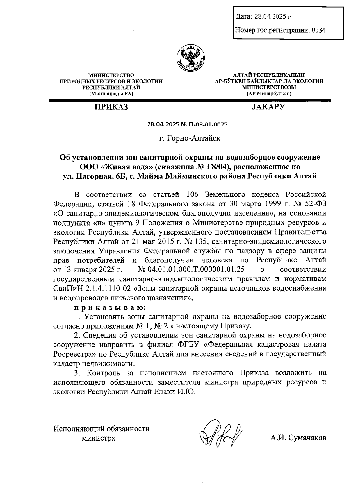 Приказ Министерства природных ресурсов и экологии Республики Алтай от 28.04.2025 № П-03-01/0025