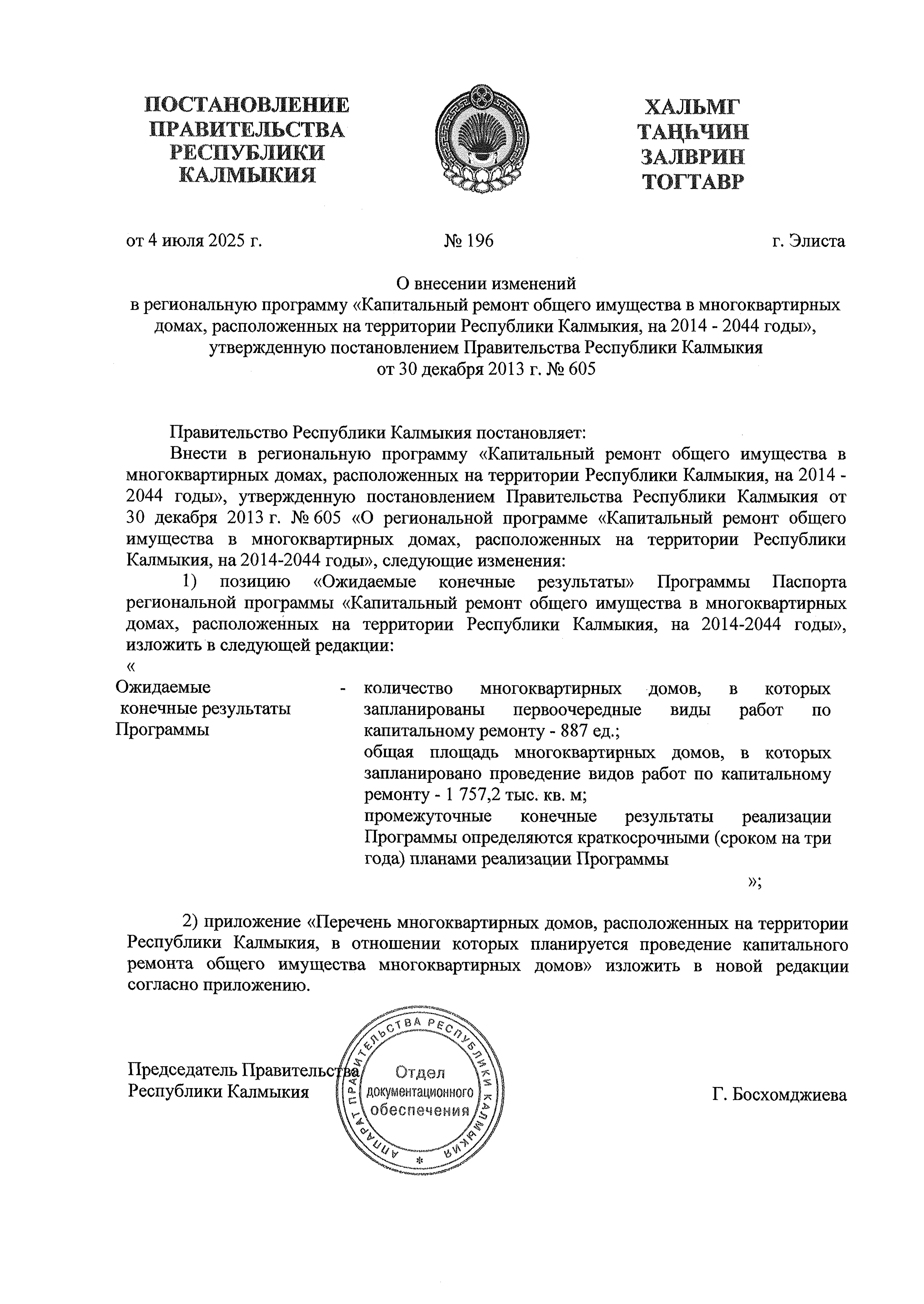 Постановление Правительства Республики Калмыкия от 04.07.2025 № 196