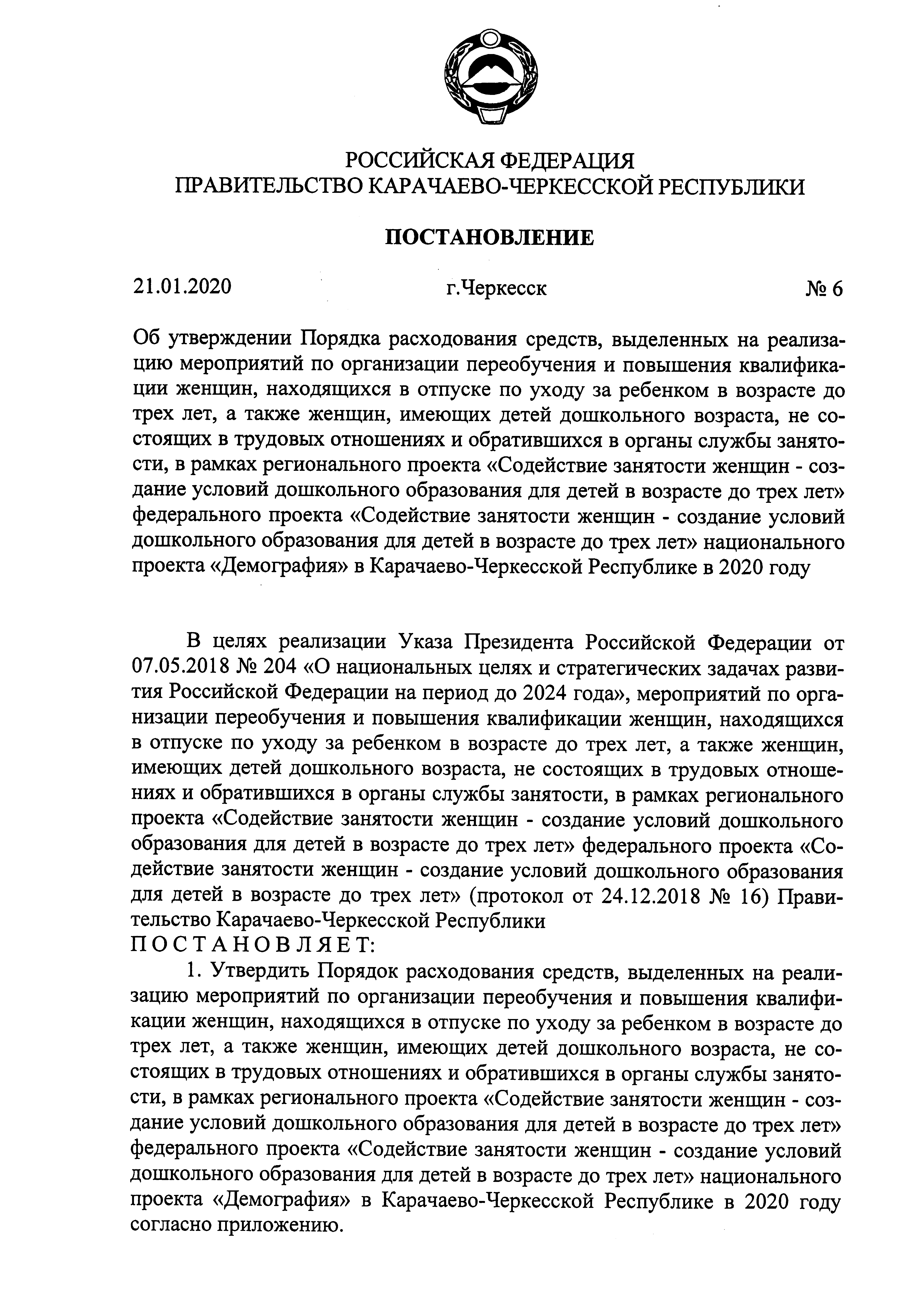Постановление Правительства Карачаево-Черкесской Республики от 21.01.2020 № 6