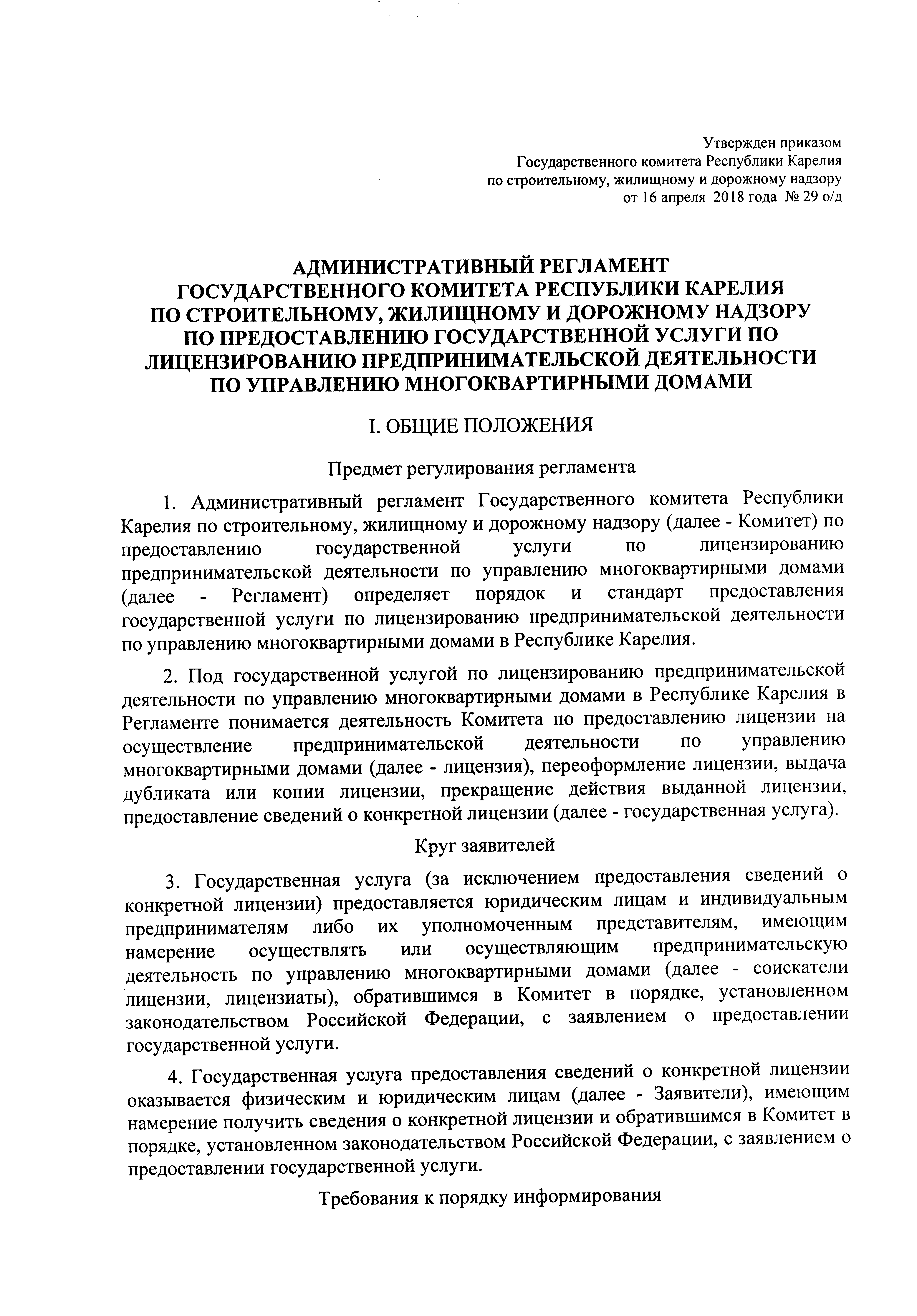 Приказ Государственного комитета Республики Карелия по строительному, жилищному и дорожному надзору от 16.04.2018 № 29 о/д