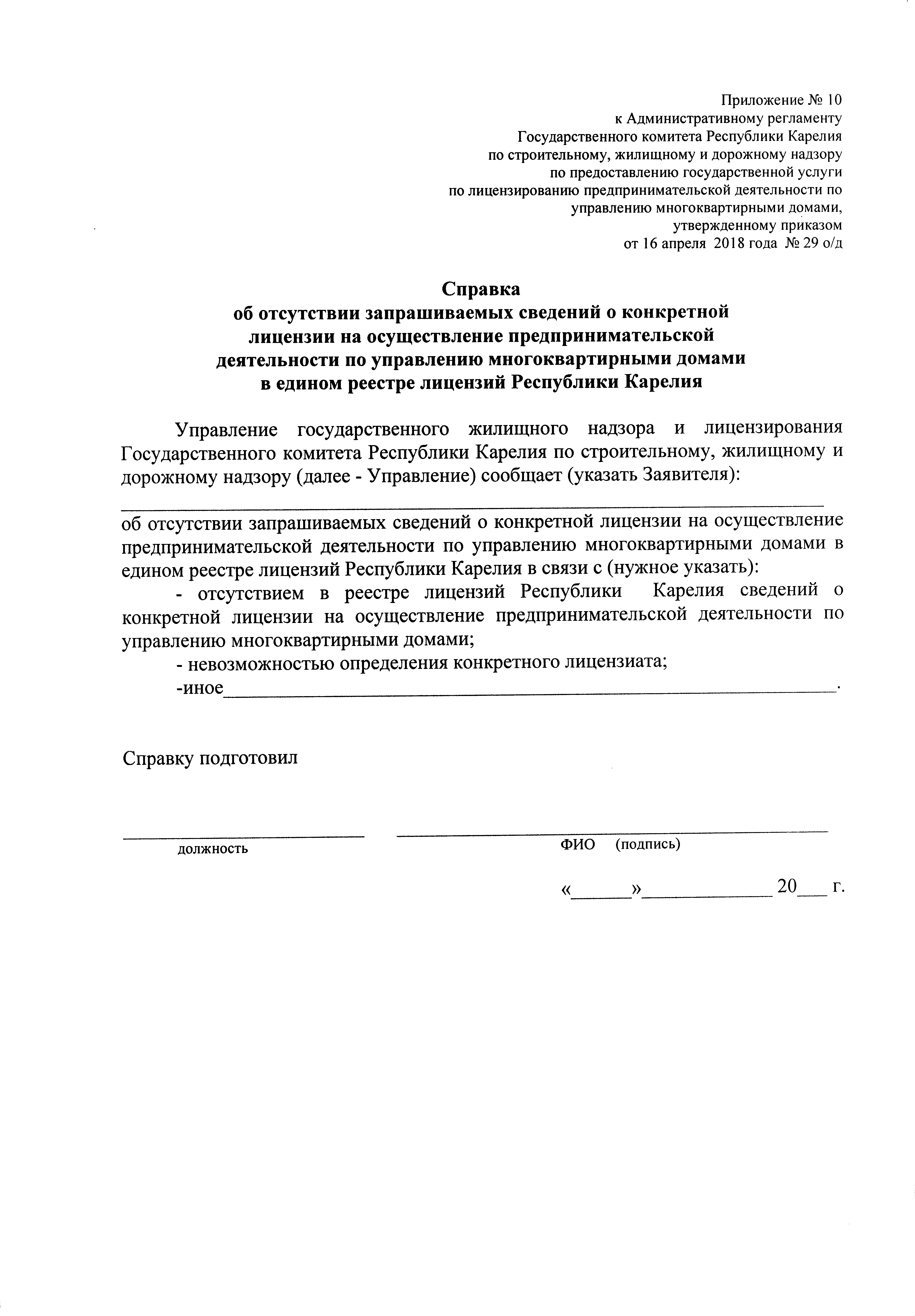 Приказ Государственного комитета Республики Карелия по строительному, жилищному и дорожному надзору от 16.04.2018 № 29 о/д