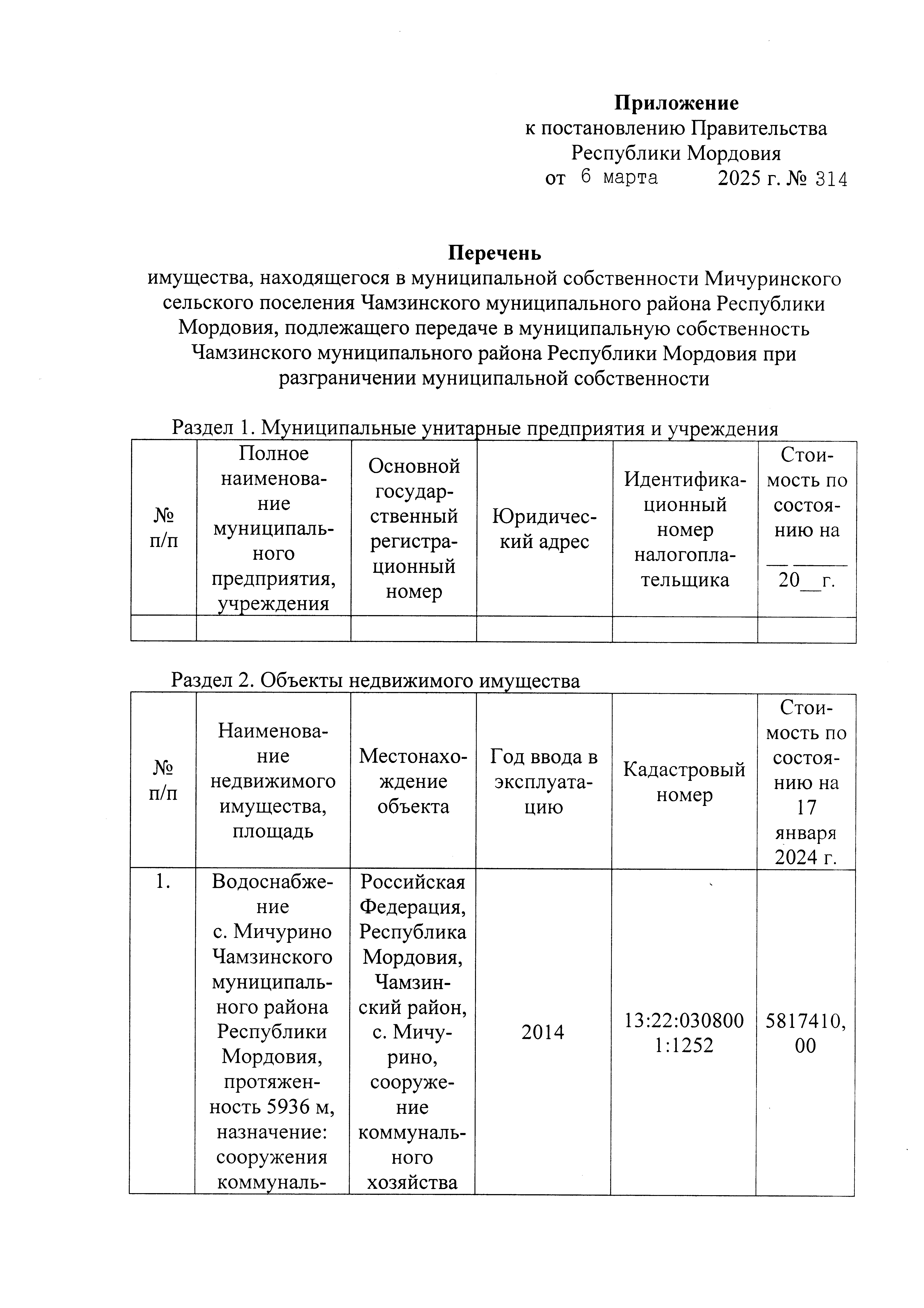 Постановление Правительства Республики Мордовия от 06.03.2025 № 314