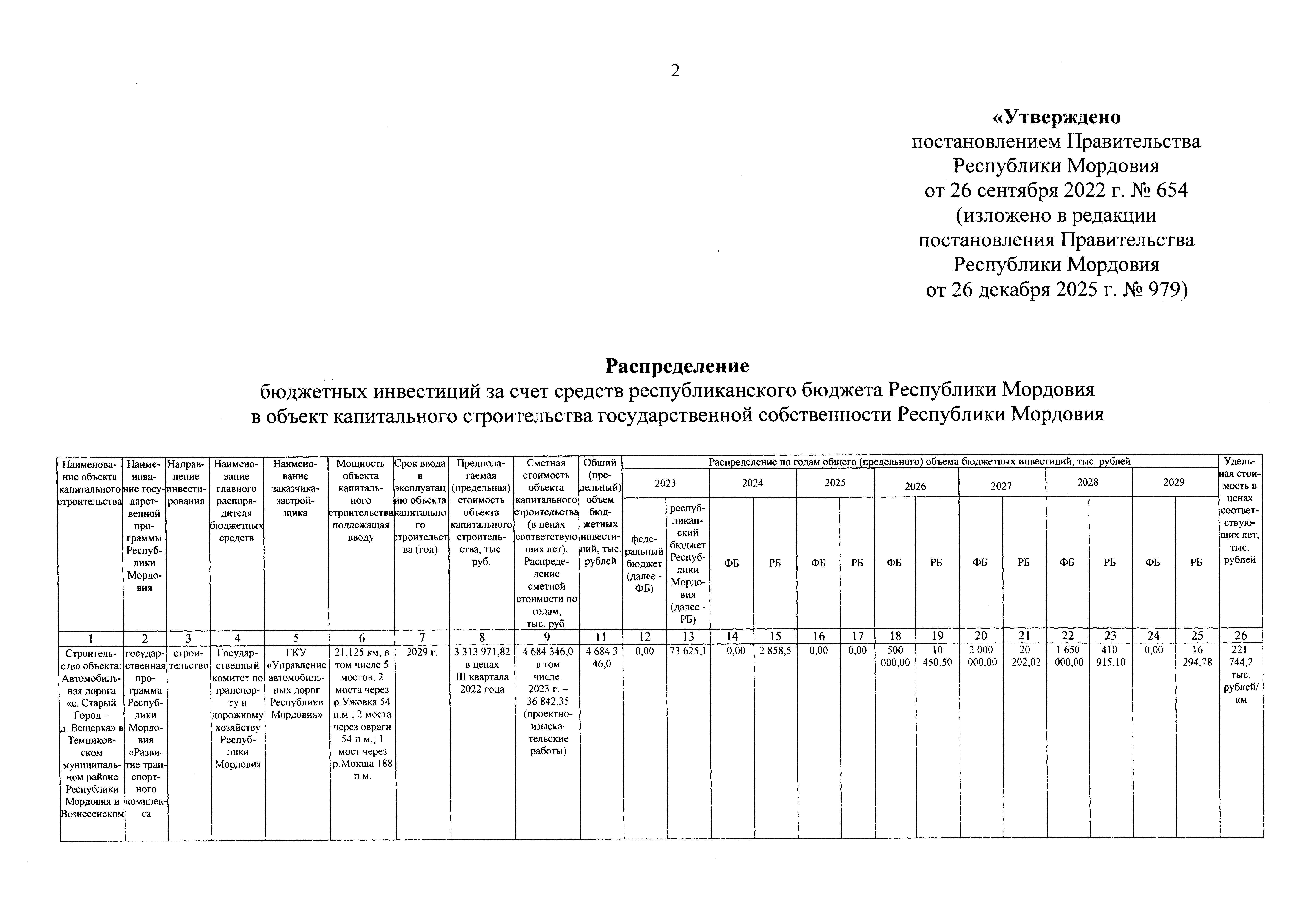Постановление Правительства Республики Мордовия от 26.12.2025 № 979