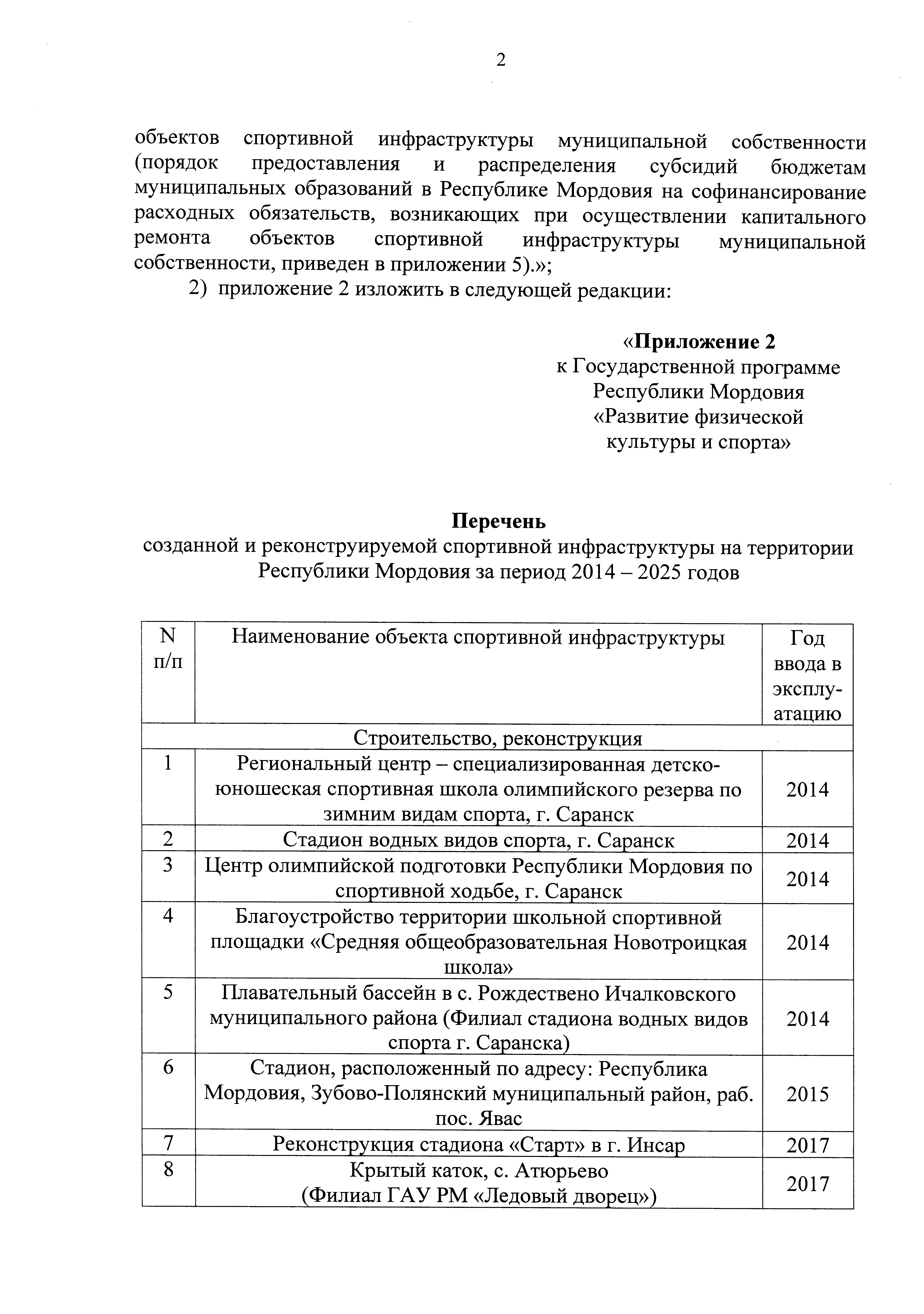 "Об установлении расходного обязательства и внесении изменений в Государственную программу Республики Мордовия "Развитие физической культуры и спорта"