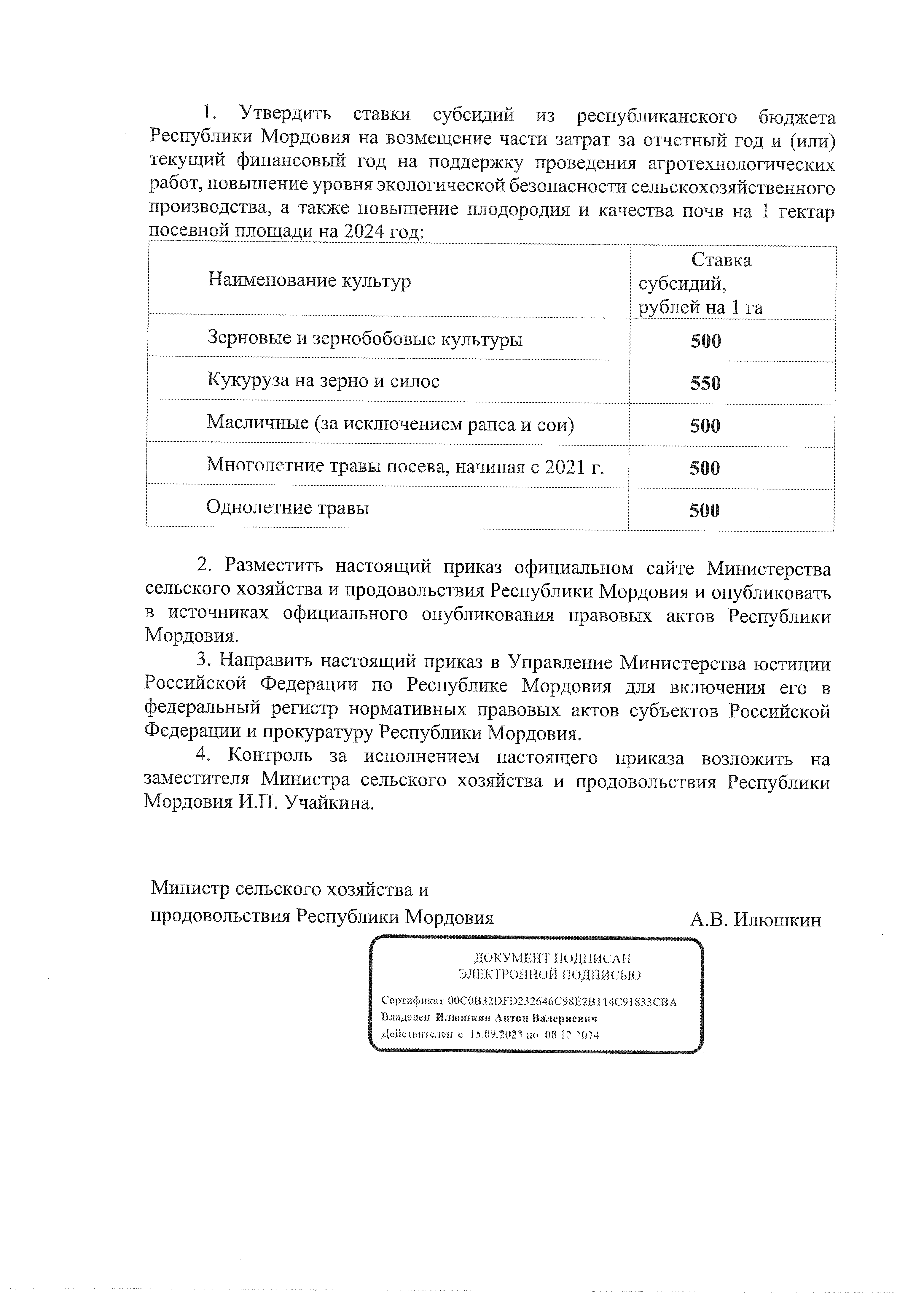 Приказ Министерства сельского хозяйства и продовольствия Республики Мордовия от 21.02.2024 № 70-П