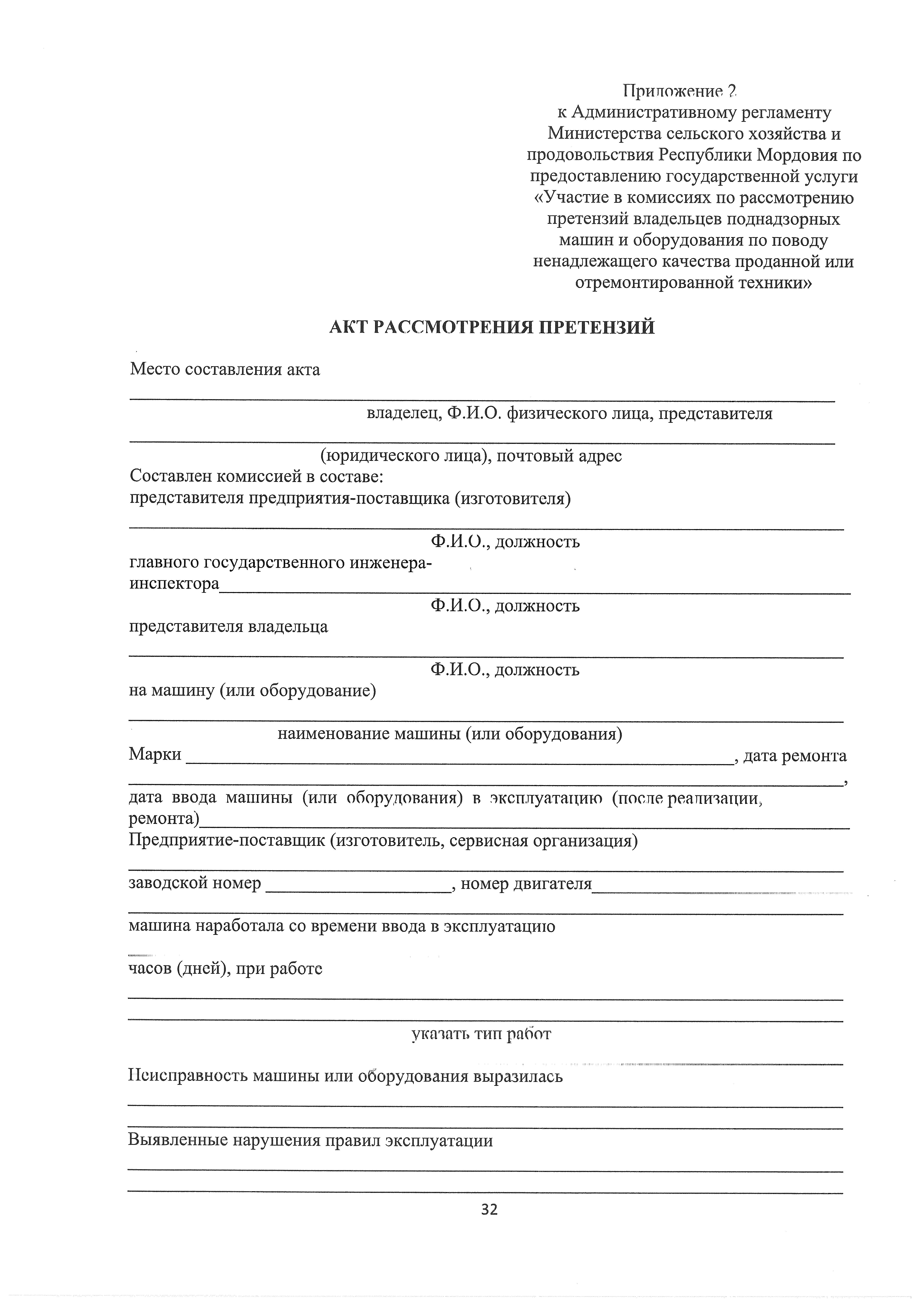 "Об утверждении Административного регламента Министерства сельского хозяйства и продовольствия Республики Мордовия по предоставлению государственной услуги "Участие в комиссиях по рассмотрению претензий владельцев поднадзорных машин и оборудования по поводу ненадлежащего качества проданной или отремонтированной техники"