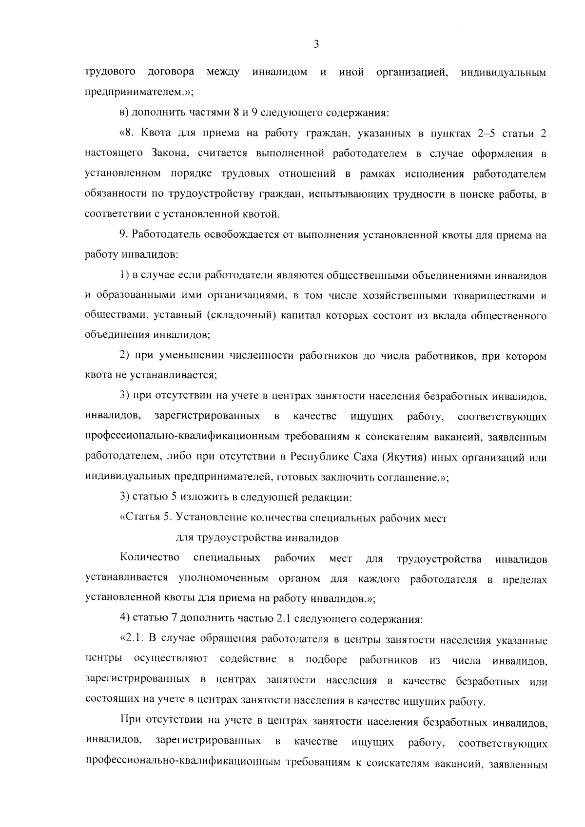 "О внесении изменений в Закон Республики Саха (Якутия) "О квотировании рабочих мест для трудоустройства граждан, испытывающих трудности в поиске работы, в Республике Саха (Якутия)"