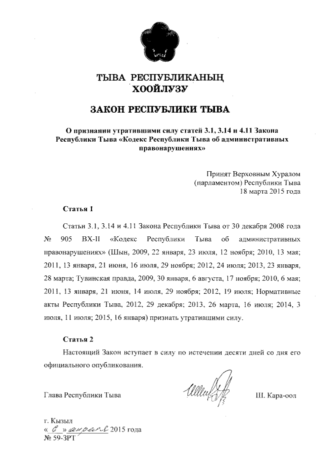 Закон Республики Тыва от 06.04.2015 № 59-ЗРТ