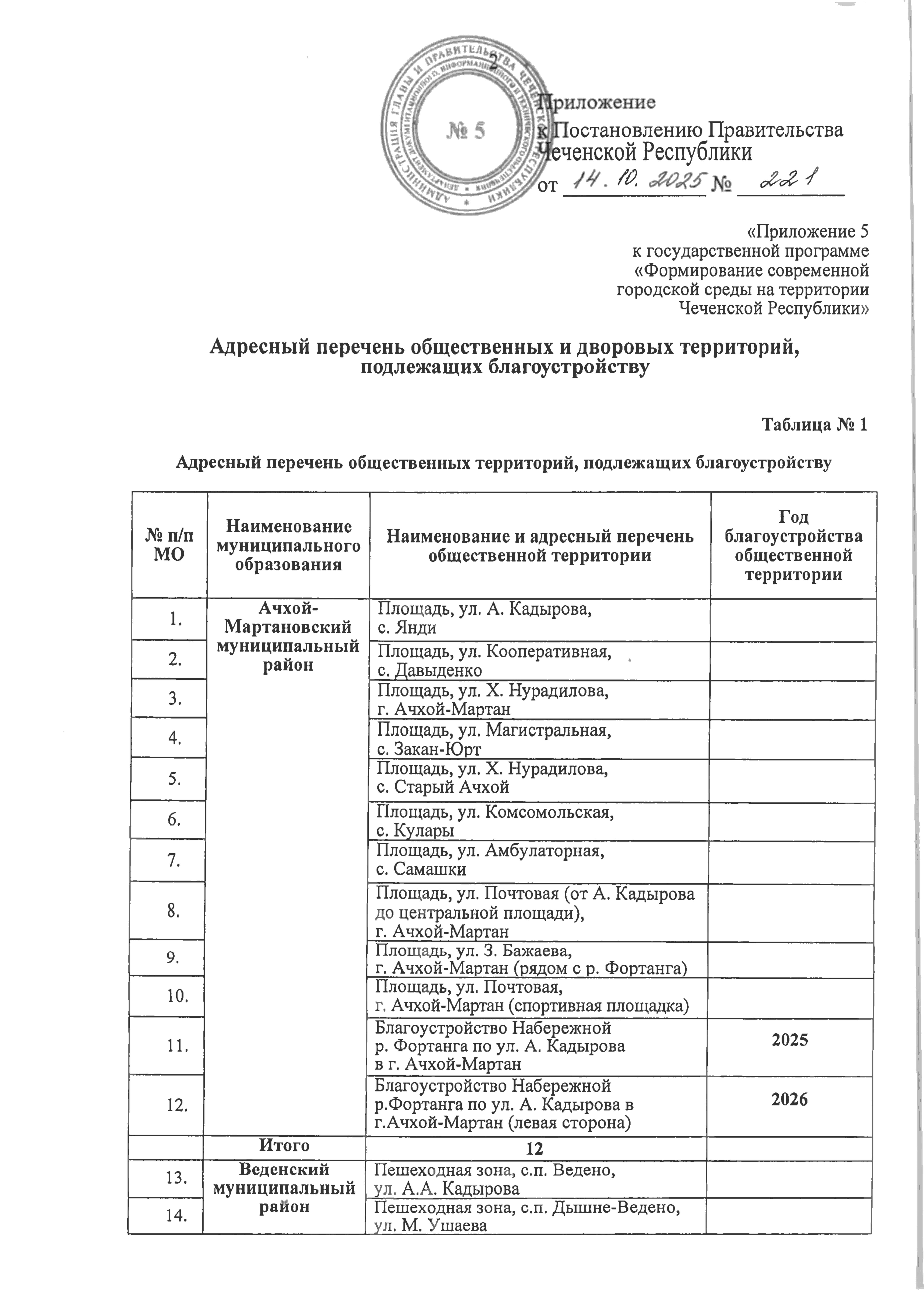 Постановление Правительства Чеченской Республики от 14.10.2025 № 221