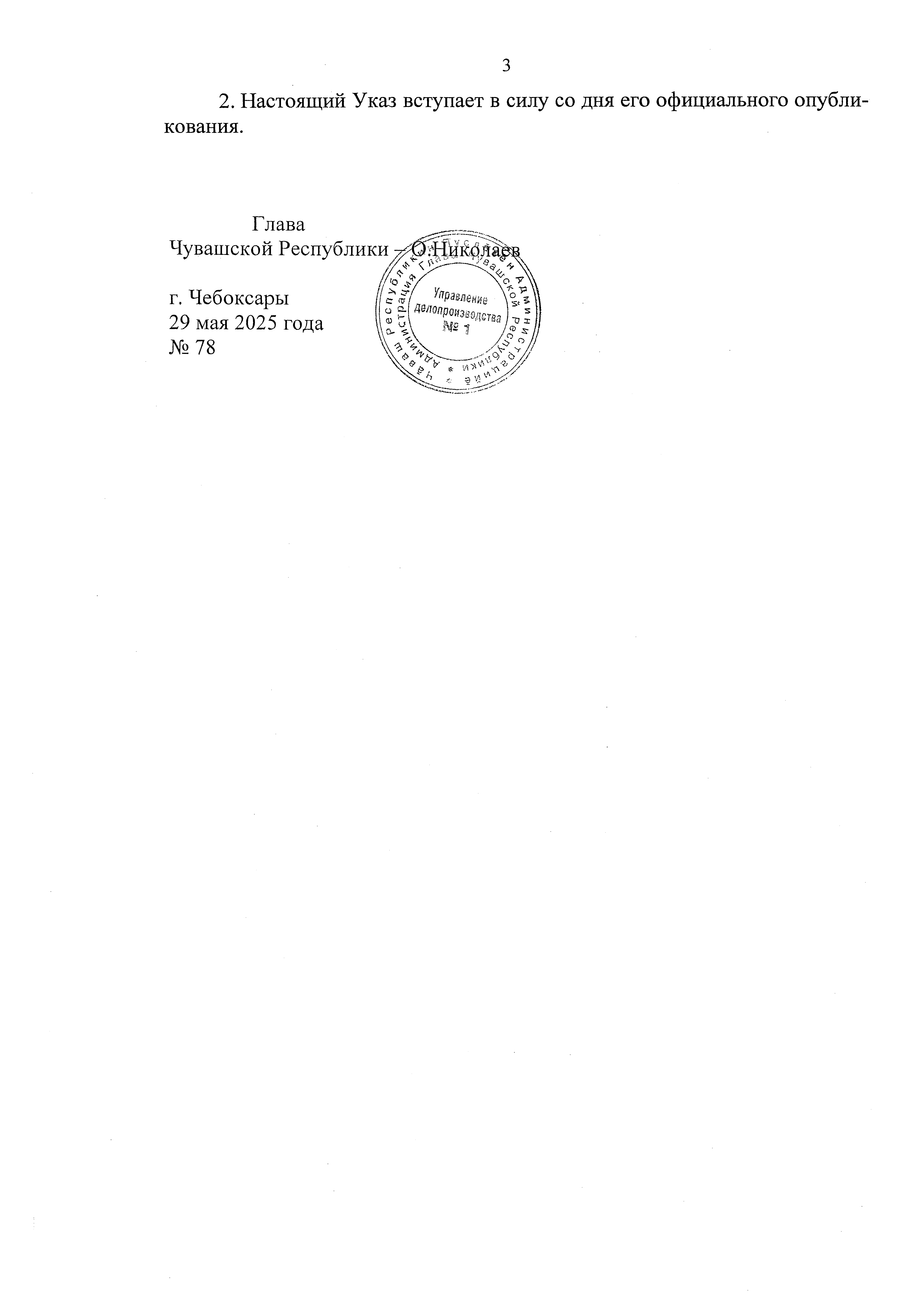 Указ Главы Чувашской Республики от 29.05.2025 № 78