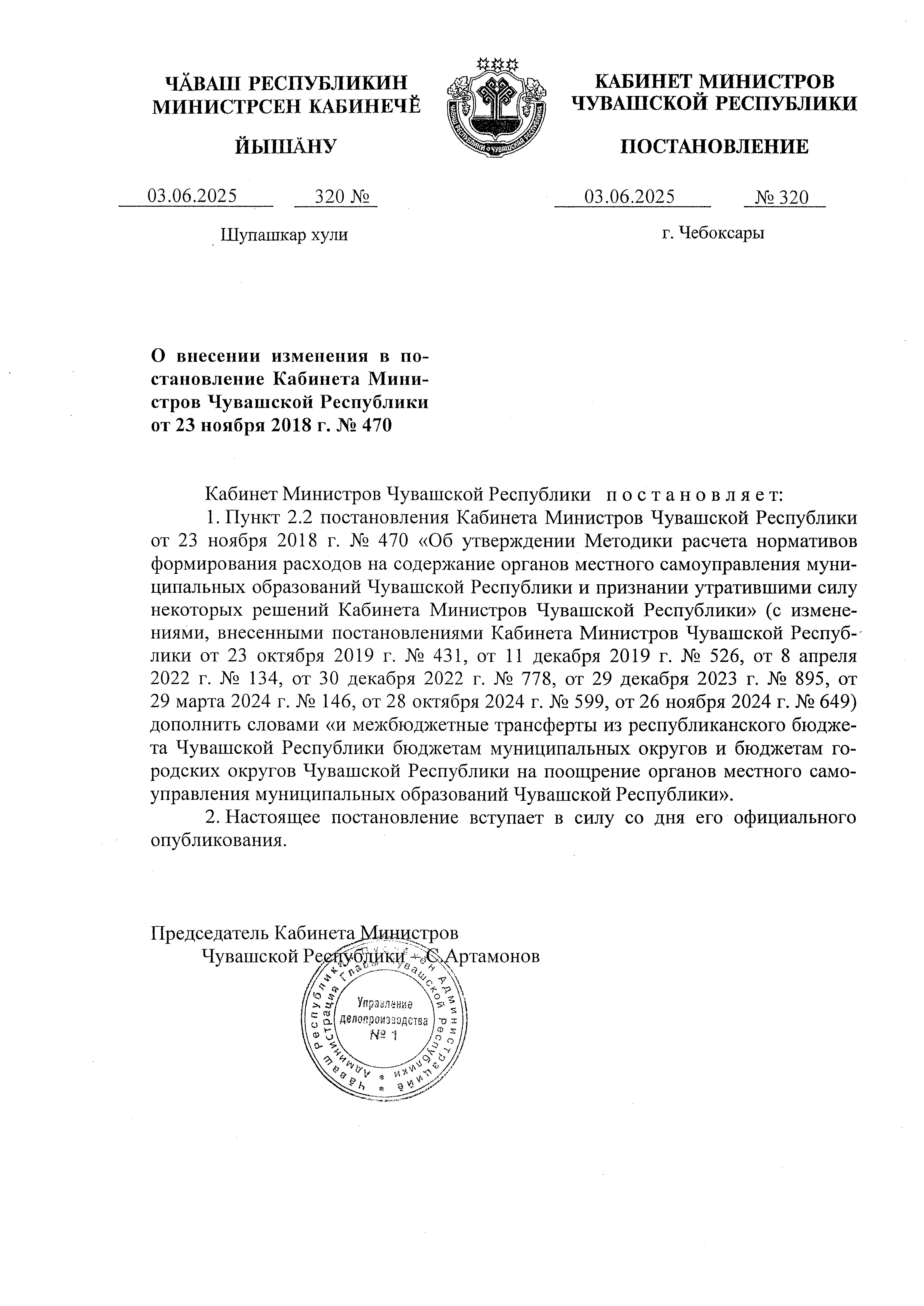 Постановление Кабинета Министров Чувашской Республики от 03.06.2025 № 320