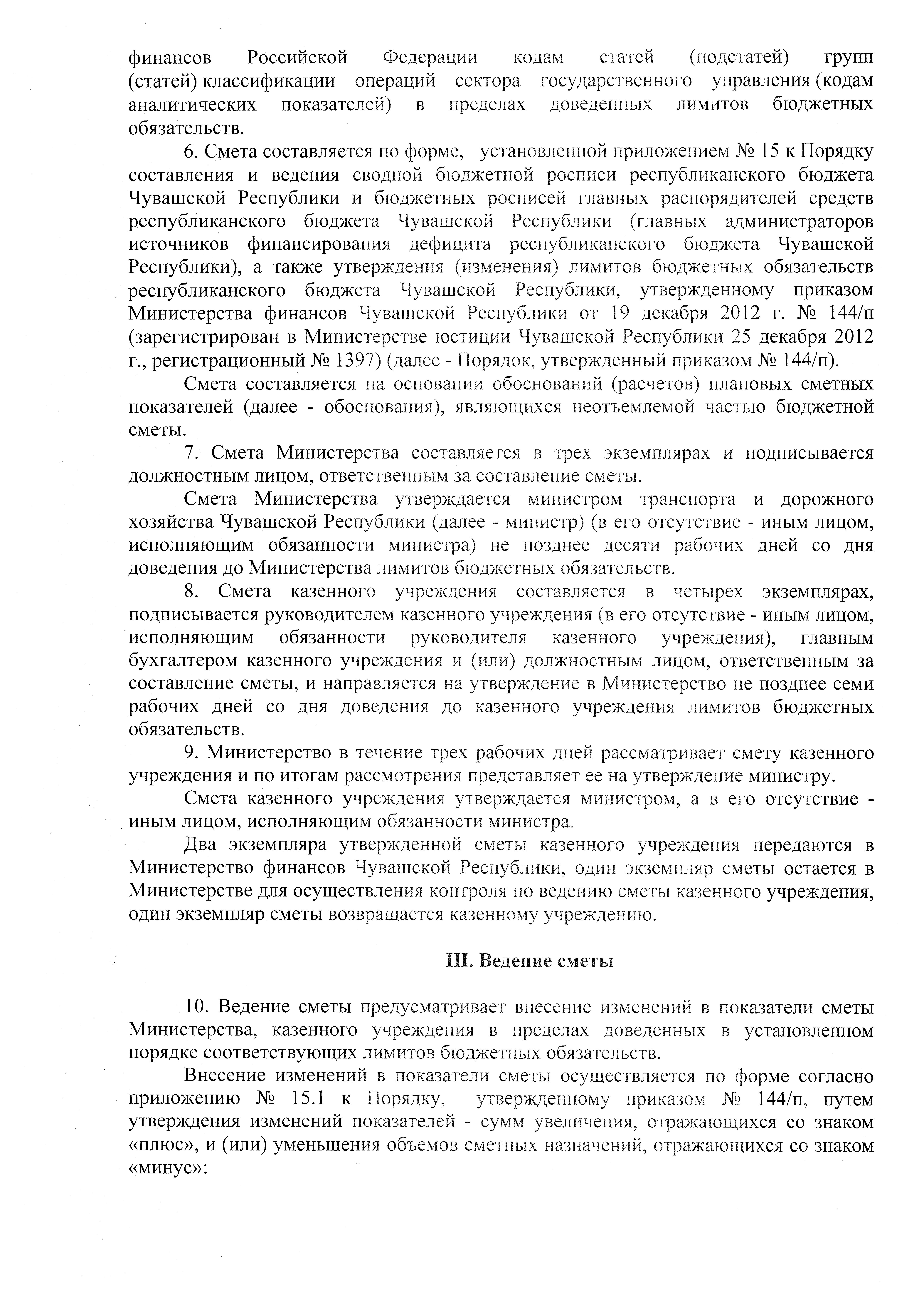 "Об утверждении Порядка составления, утверждения и ведения бюджетных смет Министерства транспорта и дорожного хозяйства Чувашской Республики и казенных учреждений Чувашской Республики, находящихся в ведении Министерства транспорта и дорожного хозяйства Чувашской Республики"
