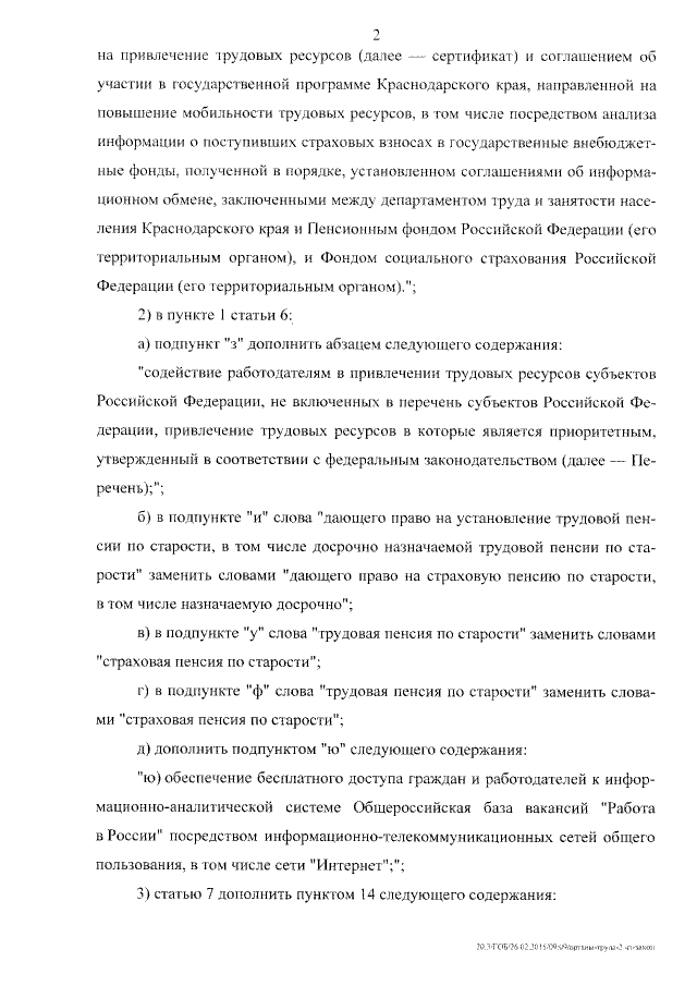 "О внесении изменений в Закон Краснодарского края "Об органах труда и занятости населения Краснодарского края"