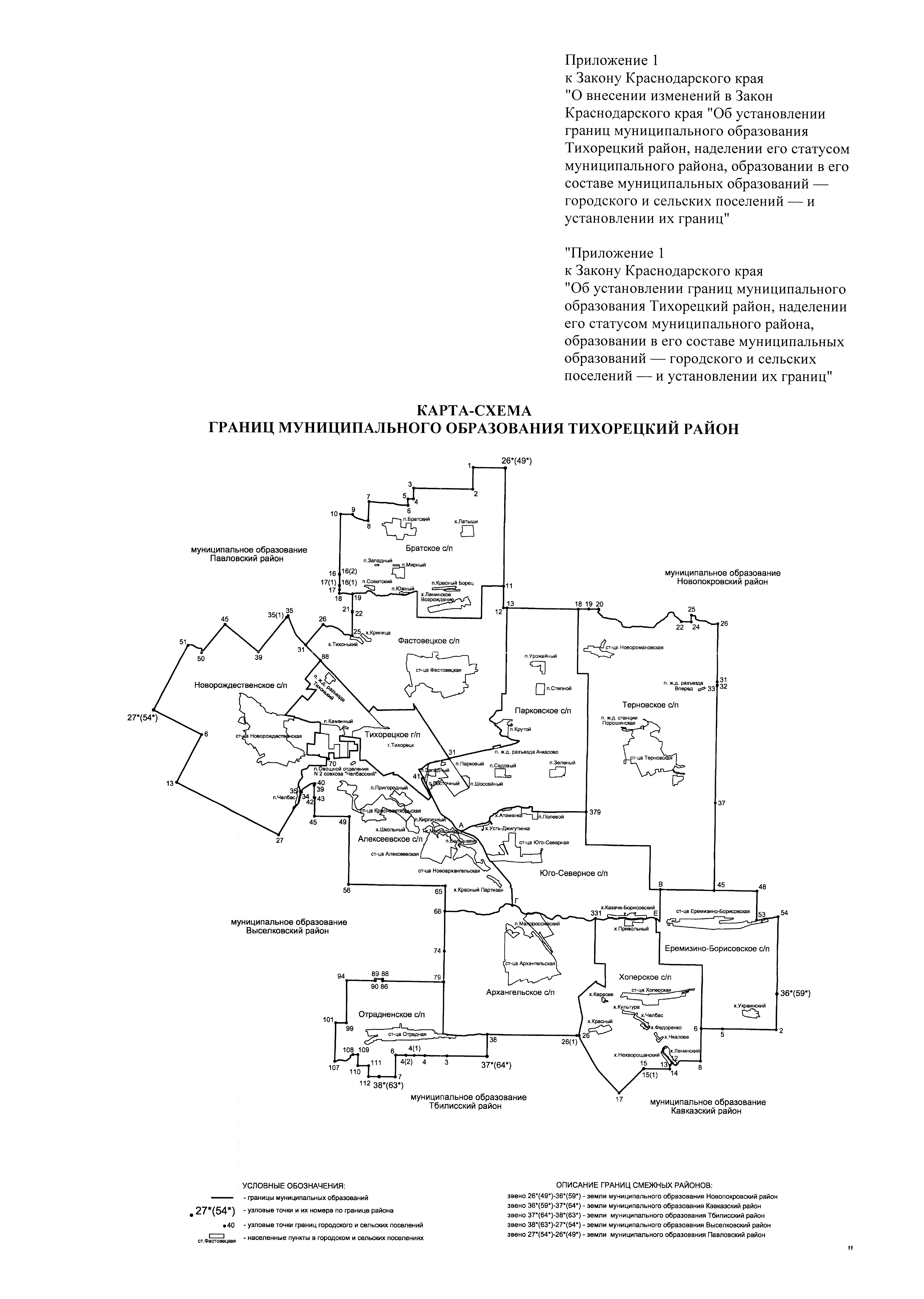 "О внесении изменений в Закон Краснодарского края "Об установлении границ муниципального образования Тихорецкий район, наделении его статусом муниципального района, образовании в его составе муниципальных образований — городского и сельских поселений — и установлении их границ"