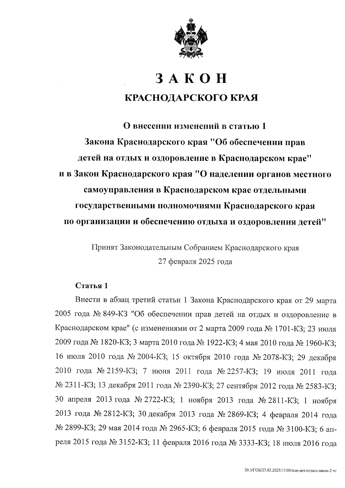 Закон Краснодарского края от 11.03.2025 № 5321-КЗ