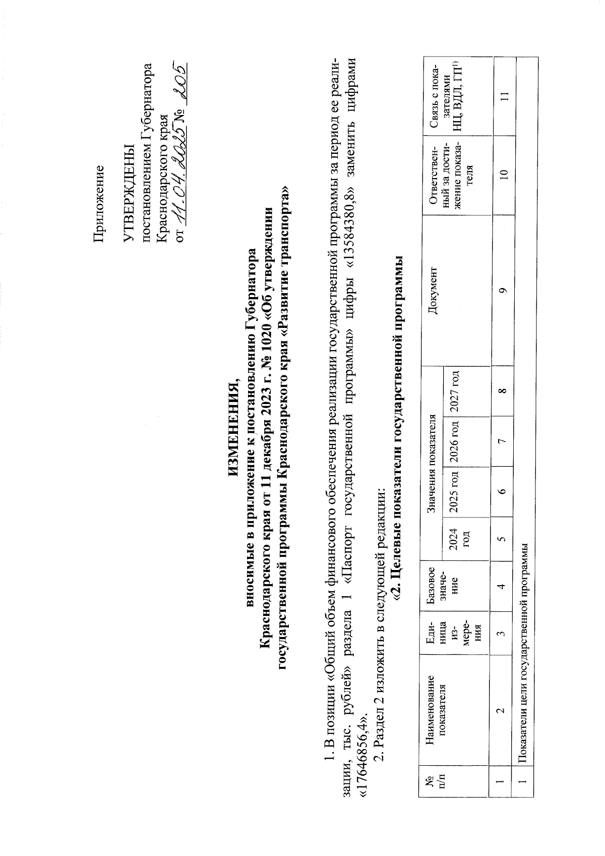 "О внесении изменений в постановление Губернатора Краснодарского края от 11 декабря 2023 г. № 1020 "Об утверждении государственной программы Краснодарского края "Развитие транспорта"