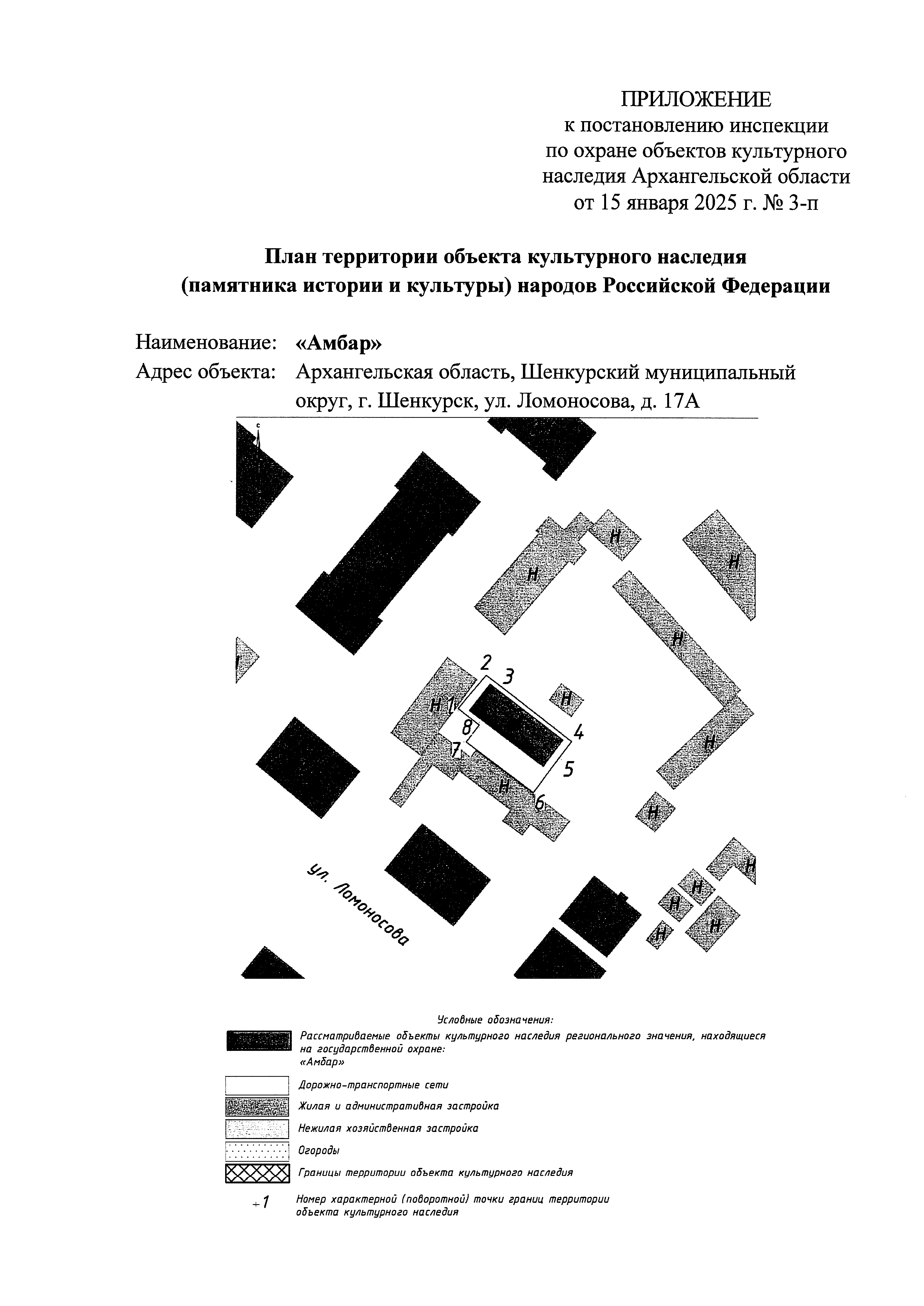 "Об утверждении границ территории объекта культурного наследия (памятника истории и культуры) народов Российской Федерации регионального значения "Амбар", расположенного по адресу: Архангельская область, Шенкурский муниципальный округ, г. Шенкурск, ул. Ломоносова, д. 17А"