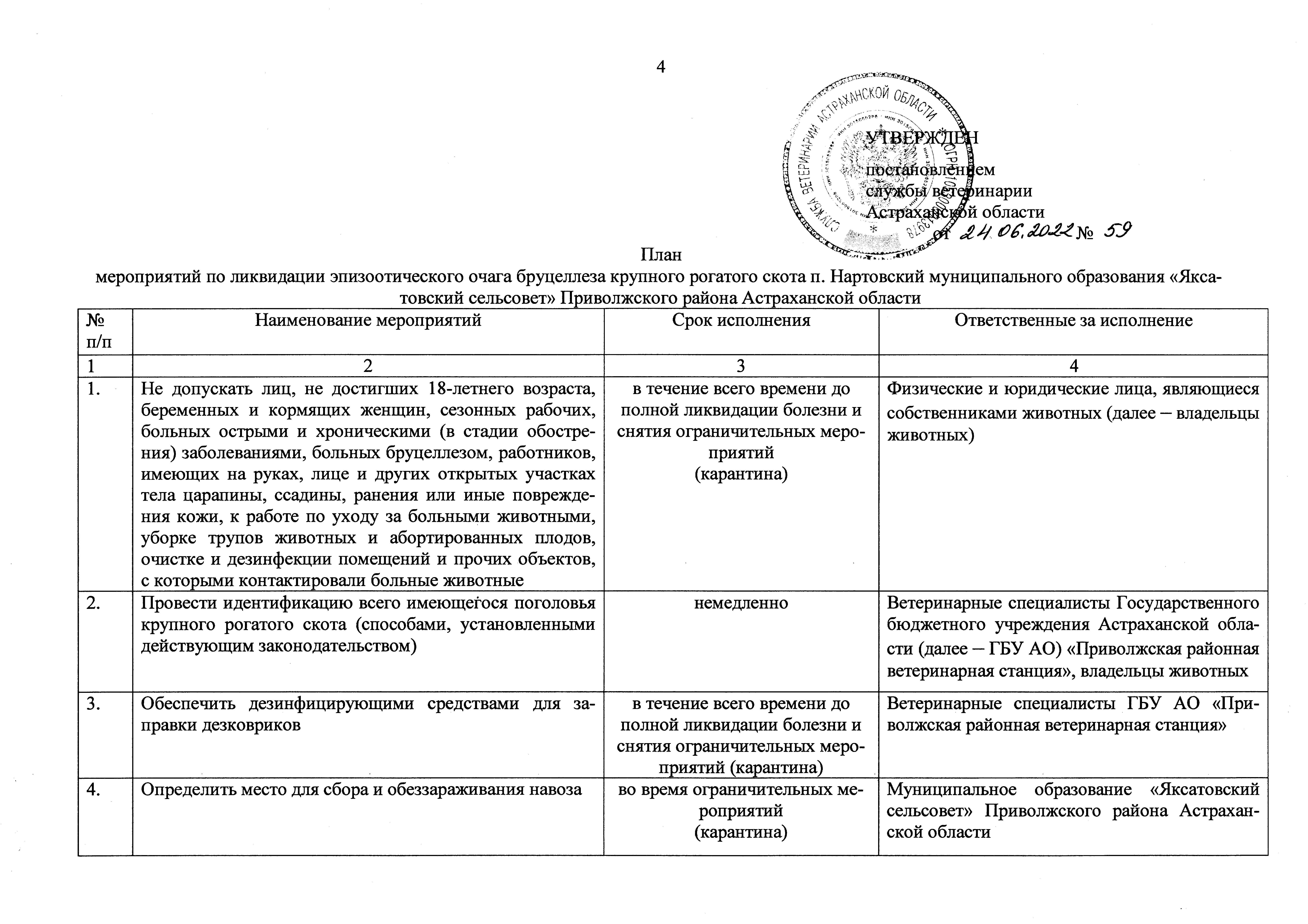 Постановление Службы ветеринарии Астраханской области от 24.06.2022 № 59