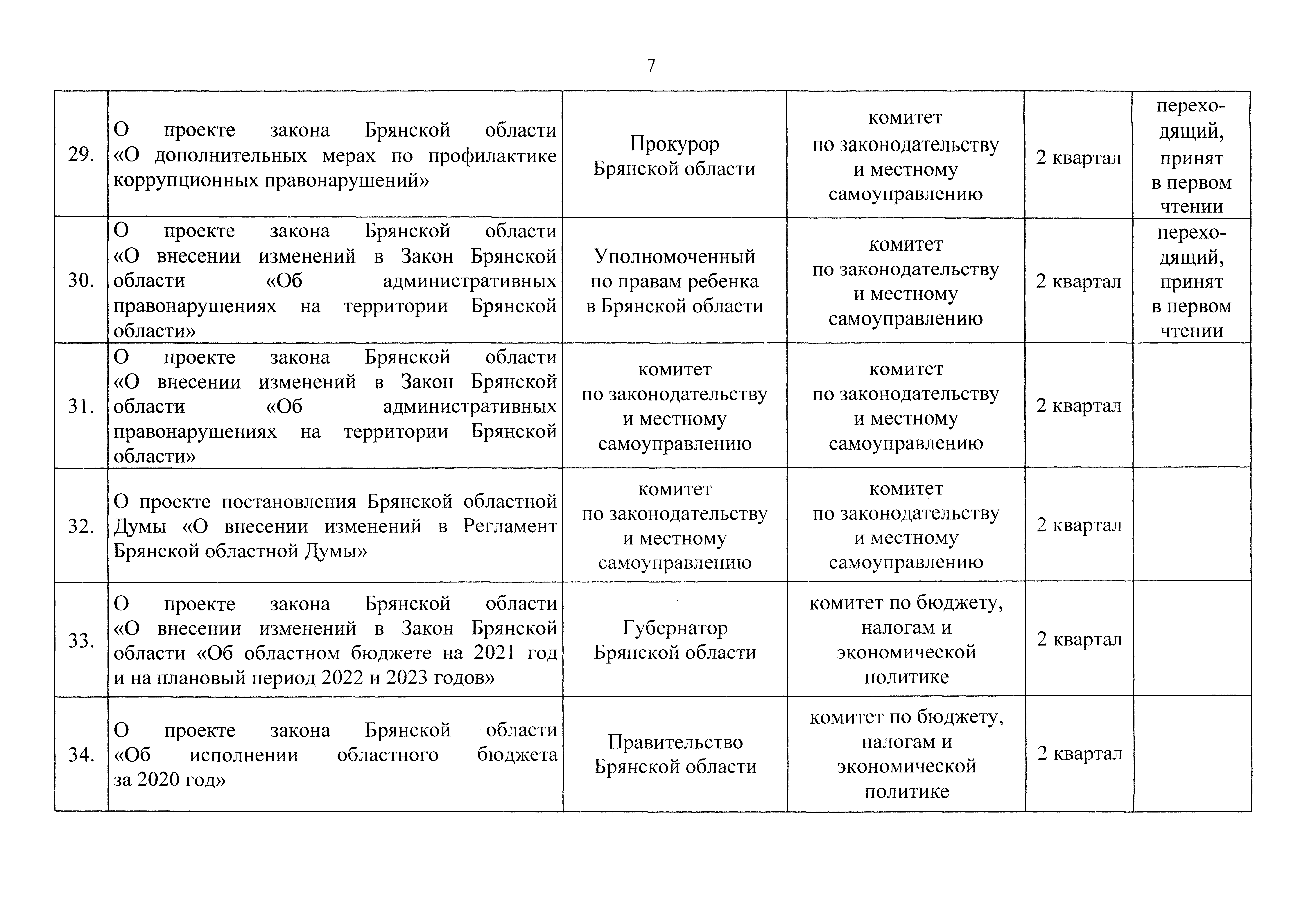 "О плане законотворческой деятельности Брянской областной Думы на первое полугодие 2021 года"