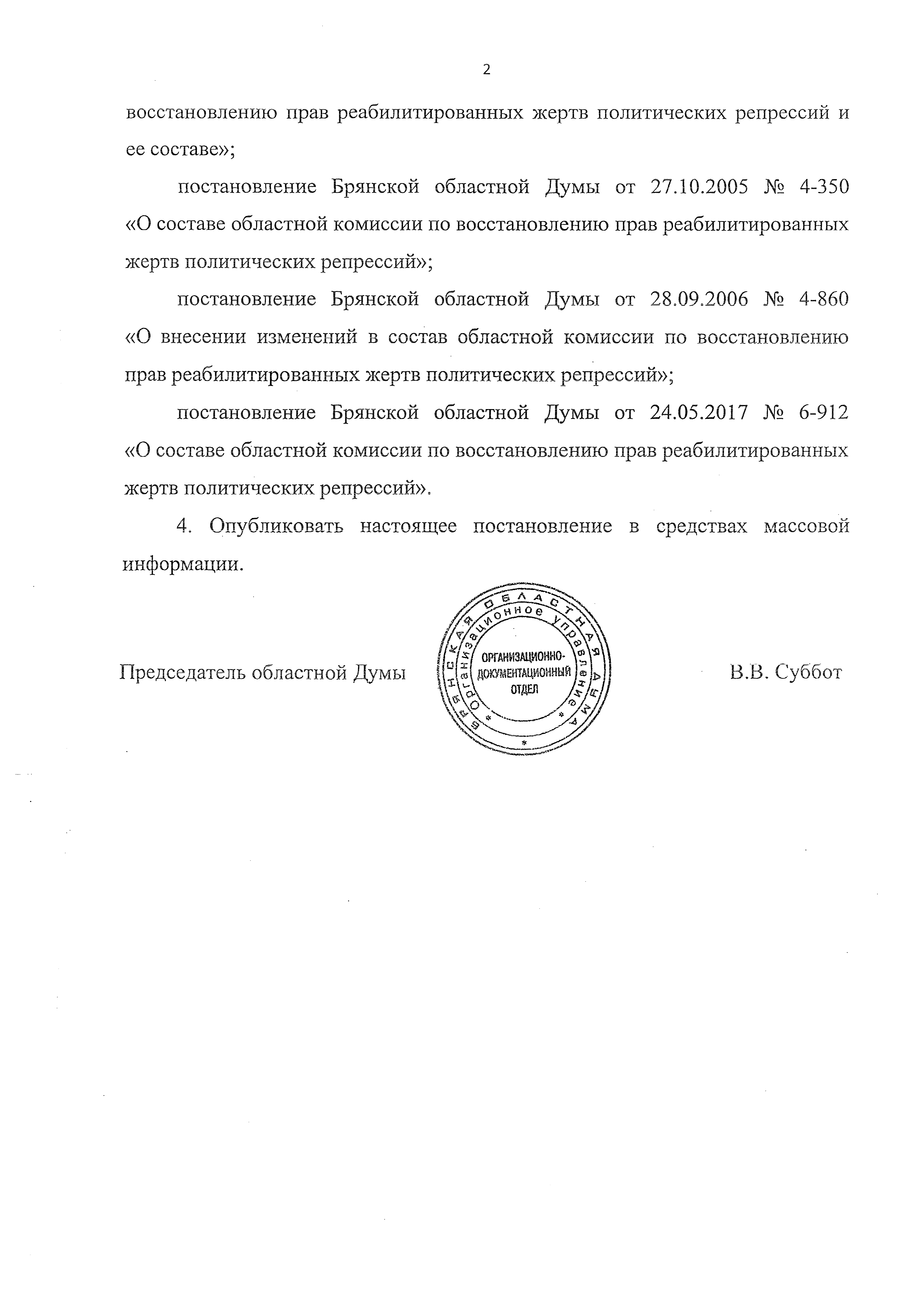 "О комиссии Брянской области по восстановлению прав реабилитированных жертв политических репрессий"