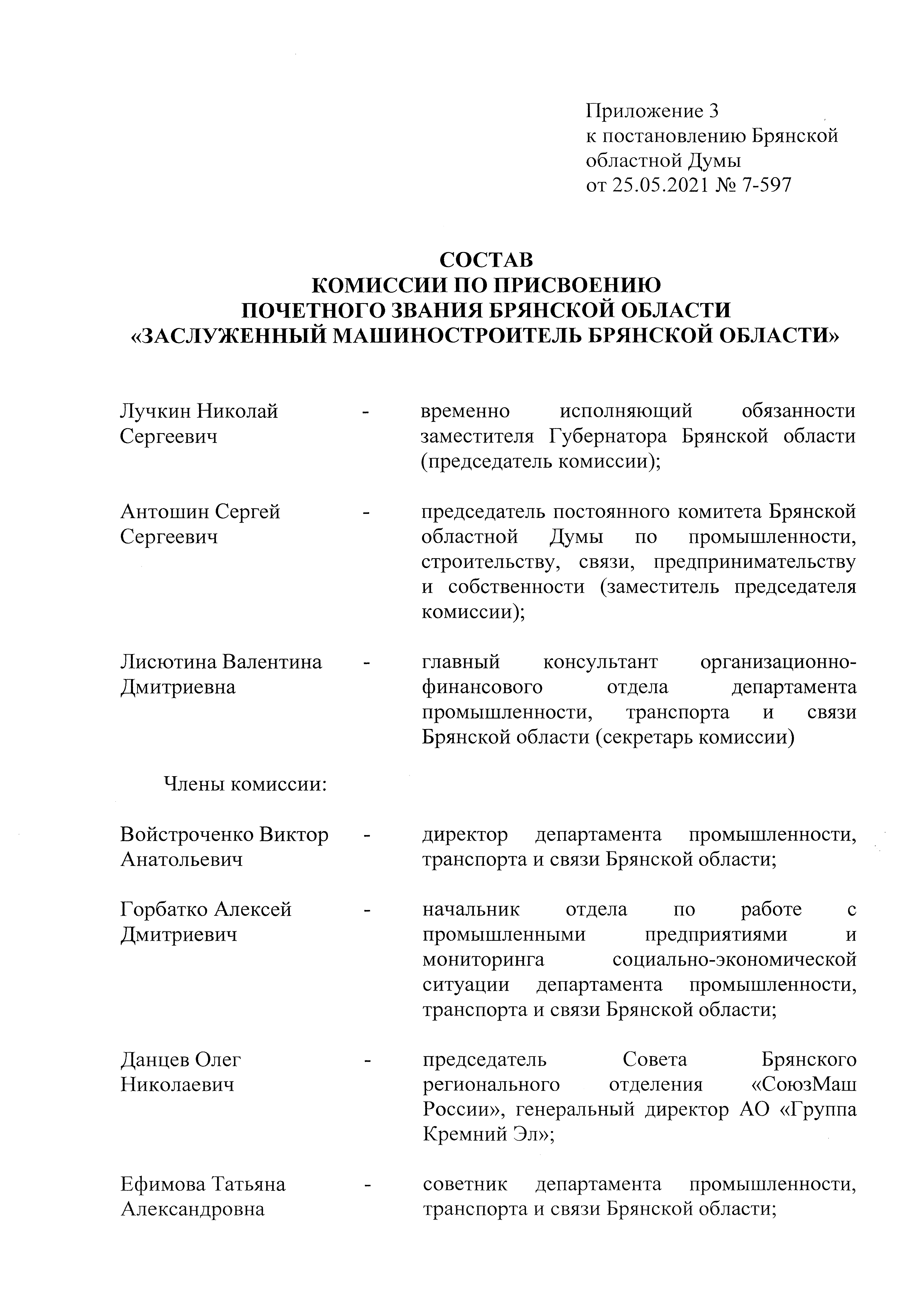 Постановление Брянской областной Думы от 25.05.2021 № 7-597