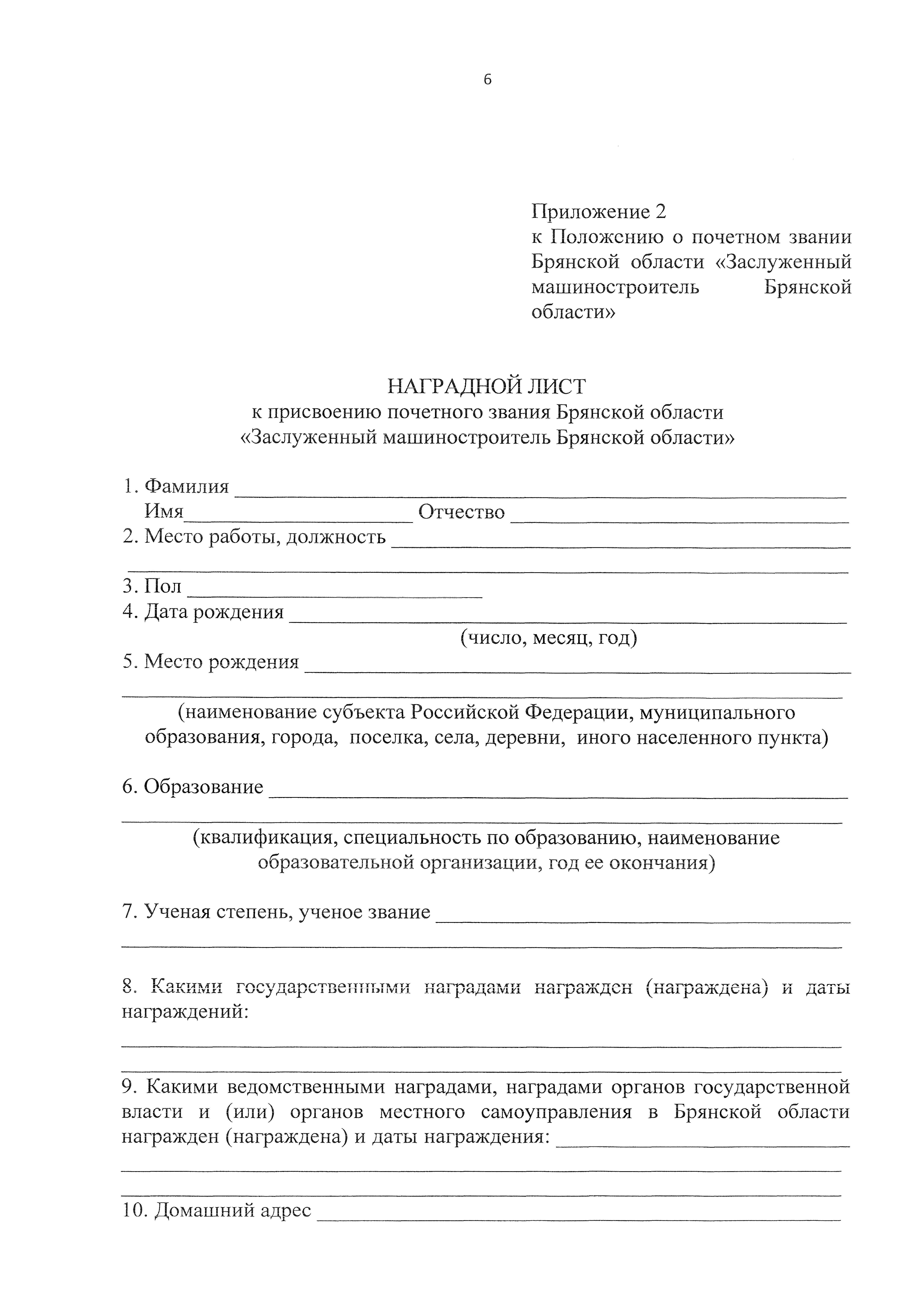 "Об учреждении почетного звания Брянской области "Заслуженный машиностроитель Брянской области"