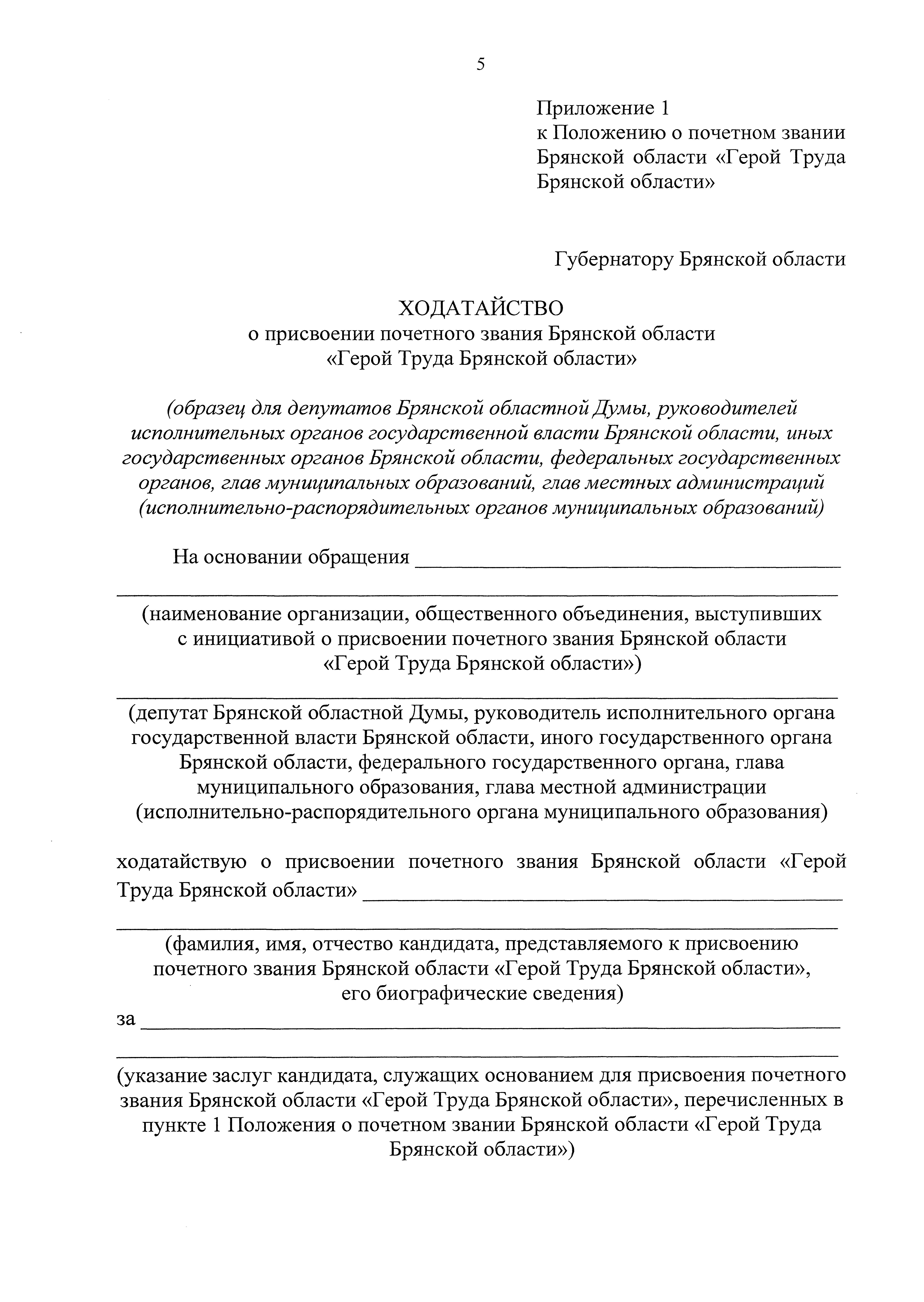 "Об учреждении почетного звания Брянской области "Герой Труда Брянской области"