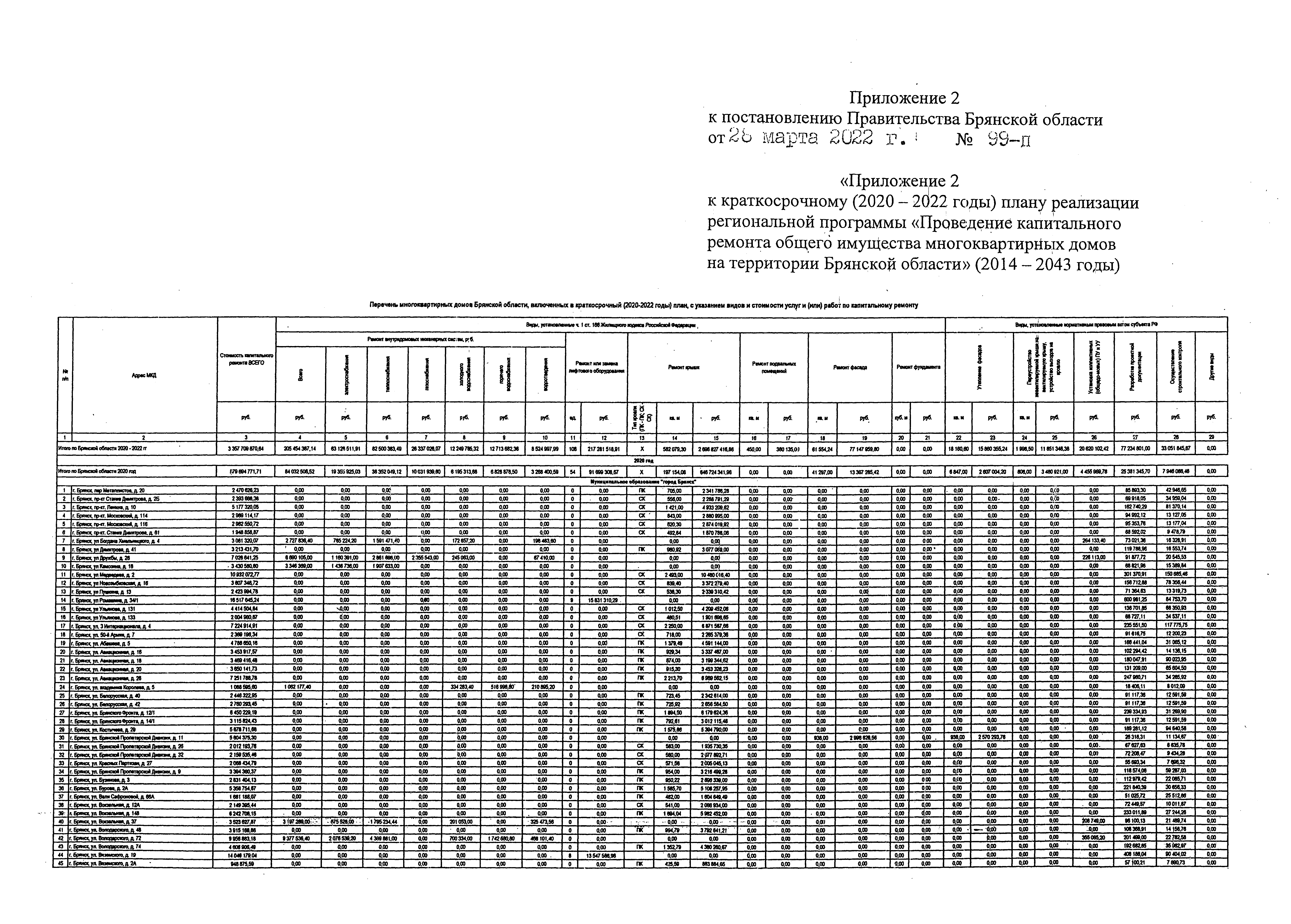 Постановление Правительства Брянской области от 28.03.2022 № 99-п