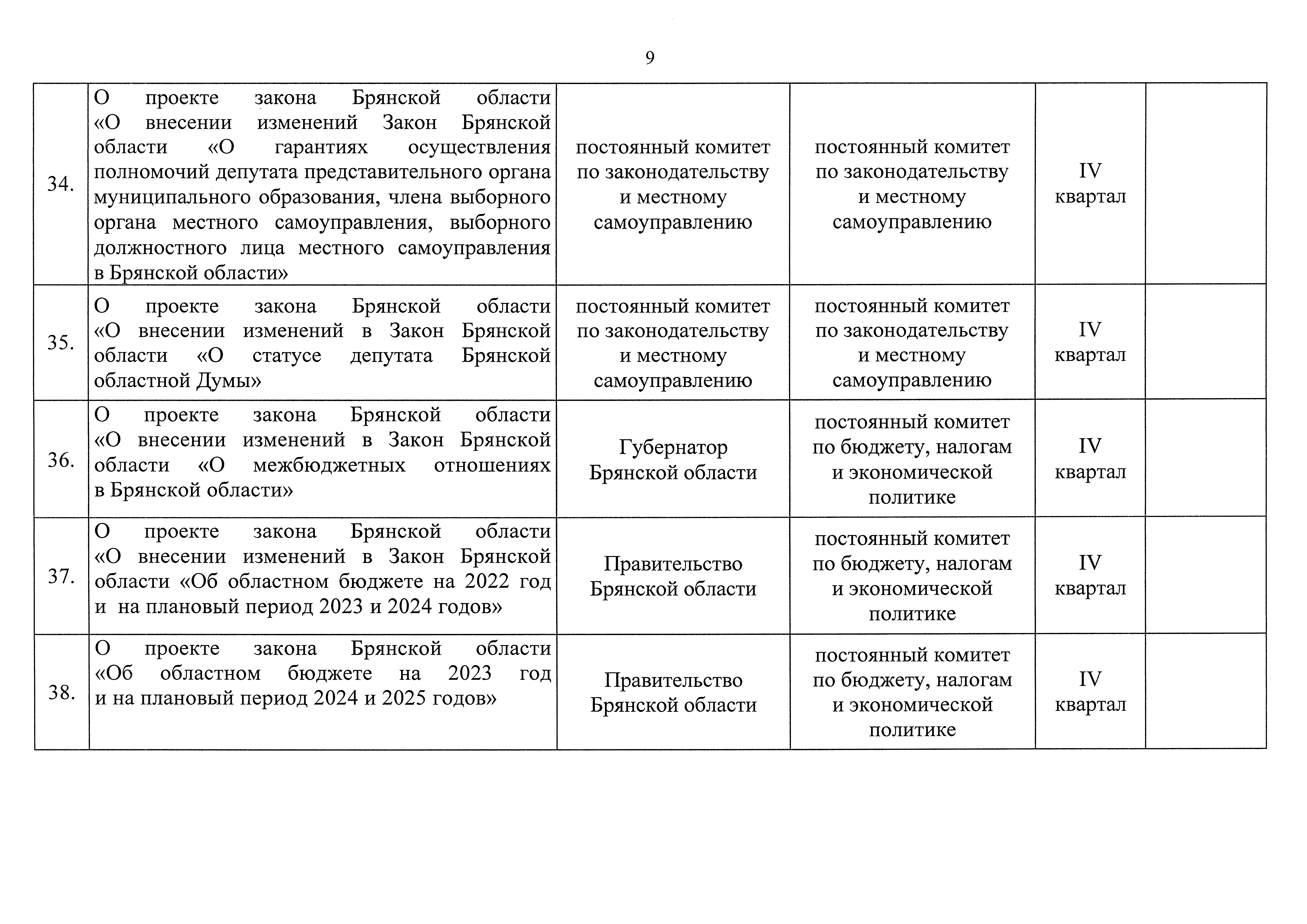 "О плане законотворческой деятельности Брянской областной Думы на второе полугодие 2022 года"