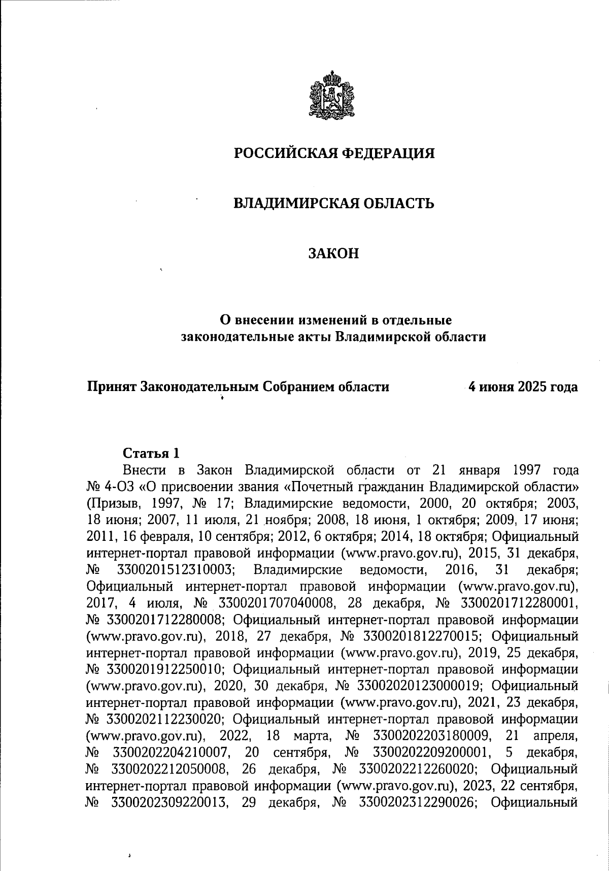 Закон Владимирской области от 09.06.2025 № 68-ОЗ