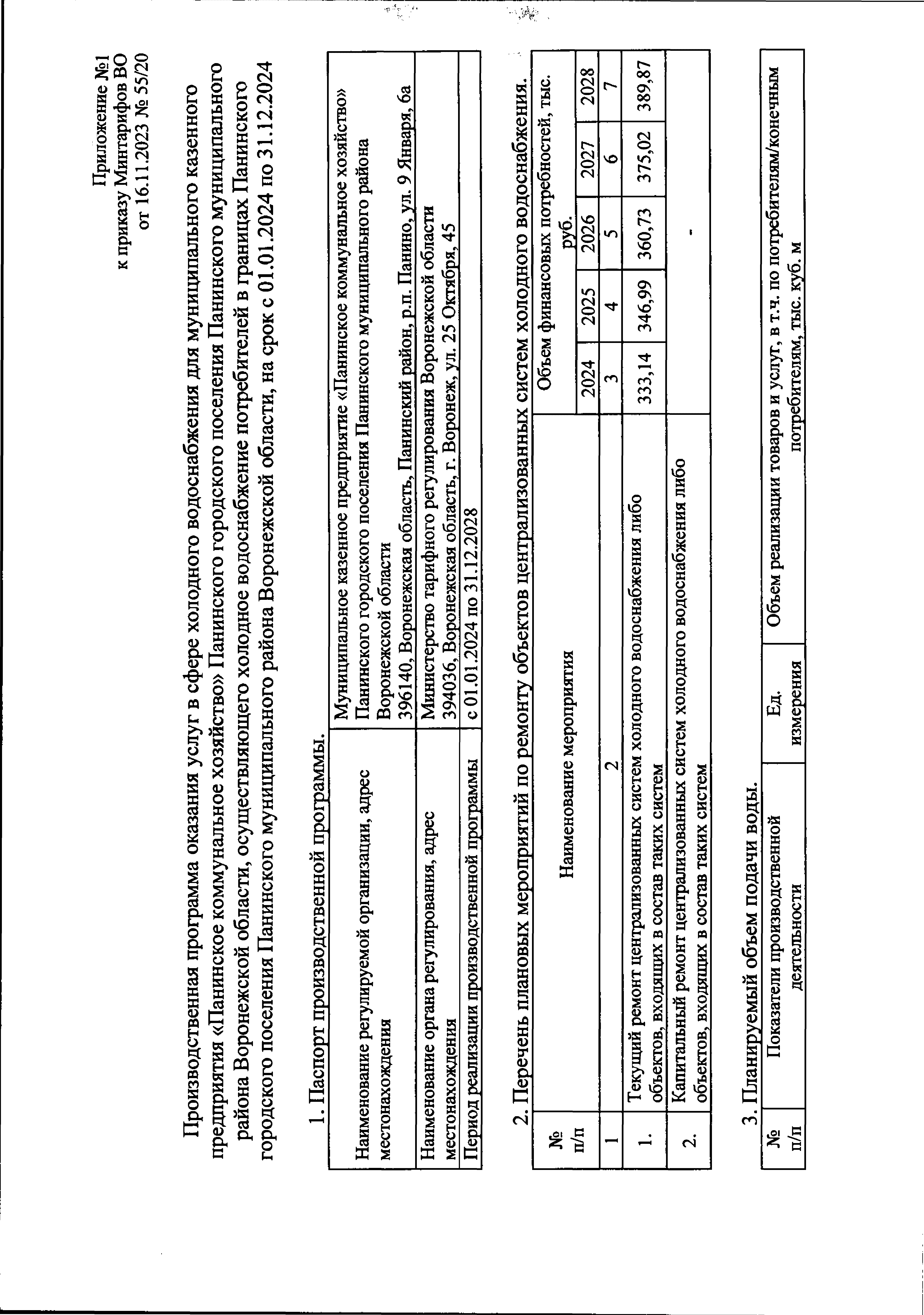 Приказ министерства тарифного регулирования Воронежской области от 16.11.2023 № 55/20
