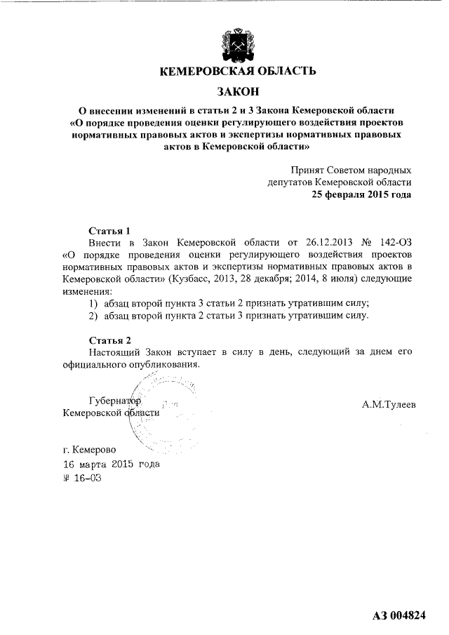 Закон Кемеровской области от 16.03.2015 № 16-ОЗ