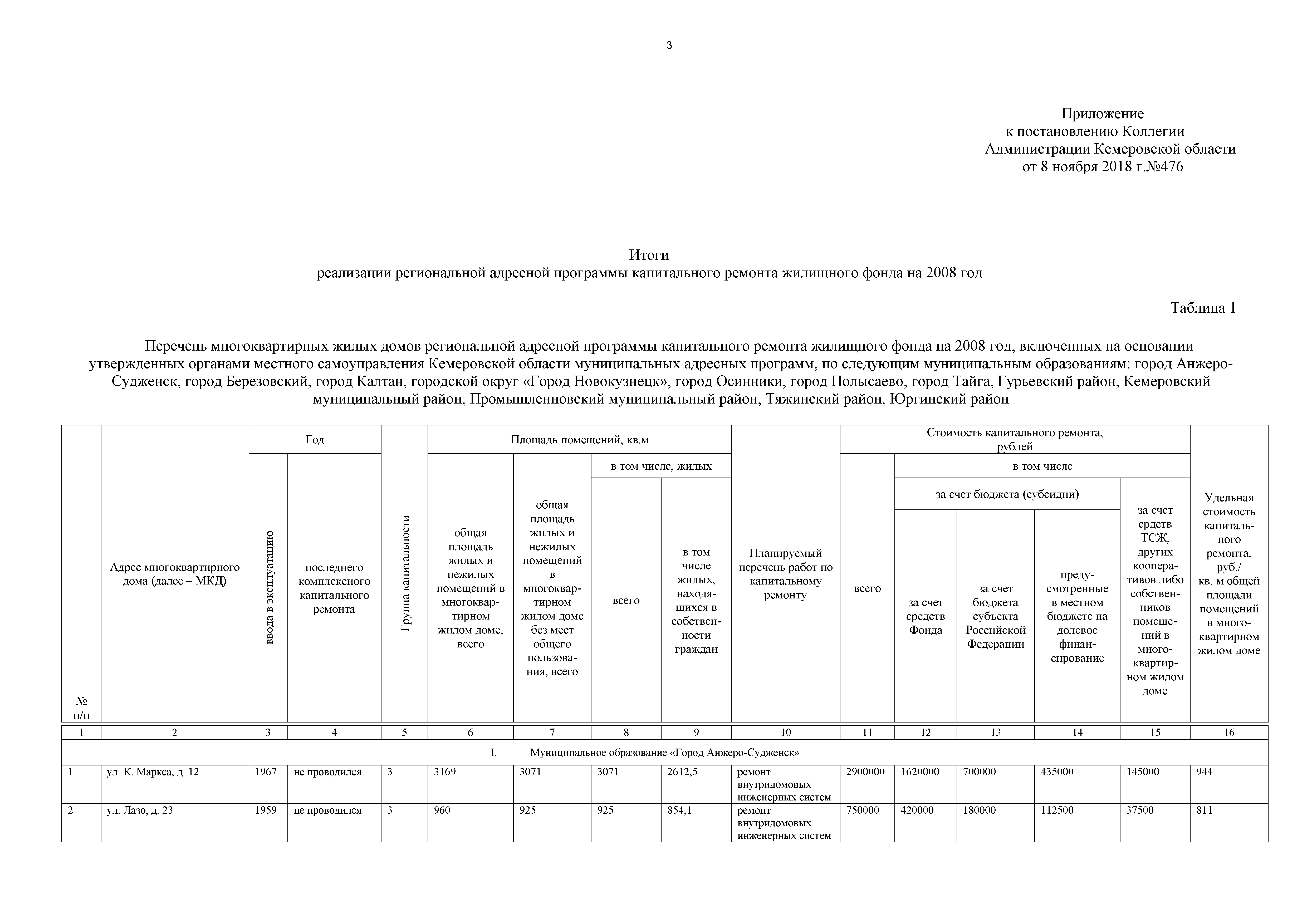 Постановление Коллегии Администрации Кемеровской области от 08.11.2018 № 476