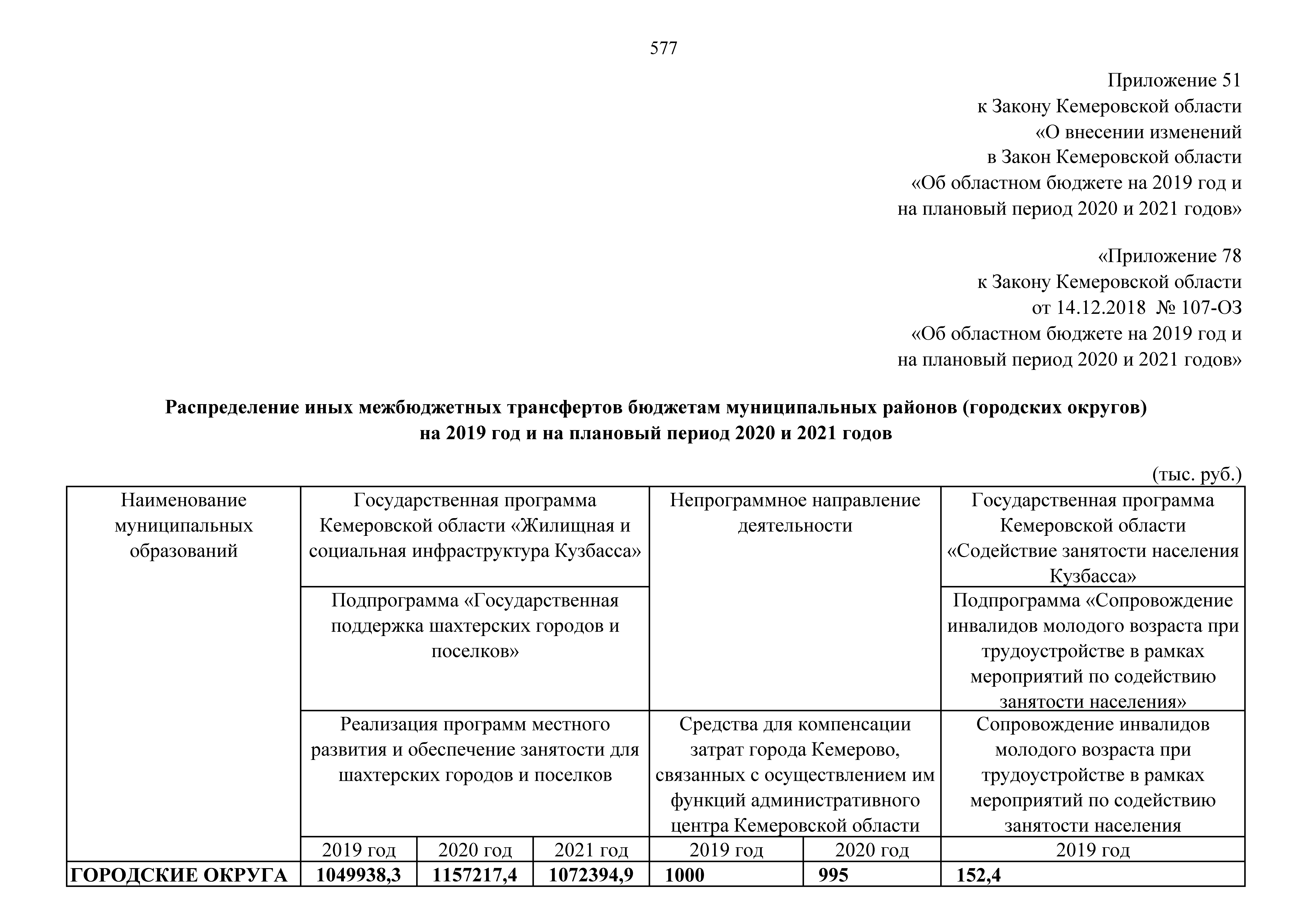 "О внесении изменений в Закон Кемеровской области "Об областном бюджете на 2019 год и на плановый период 2020 и 2021 годов"