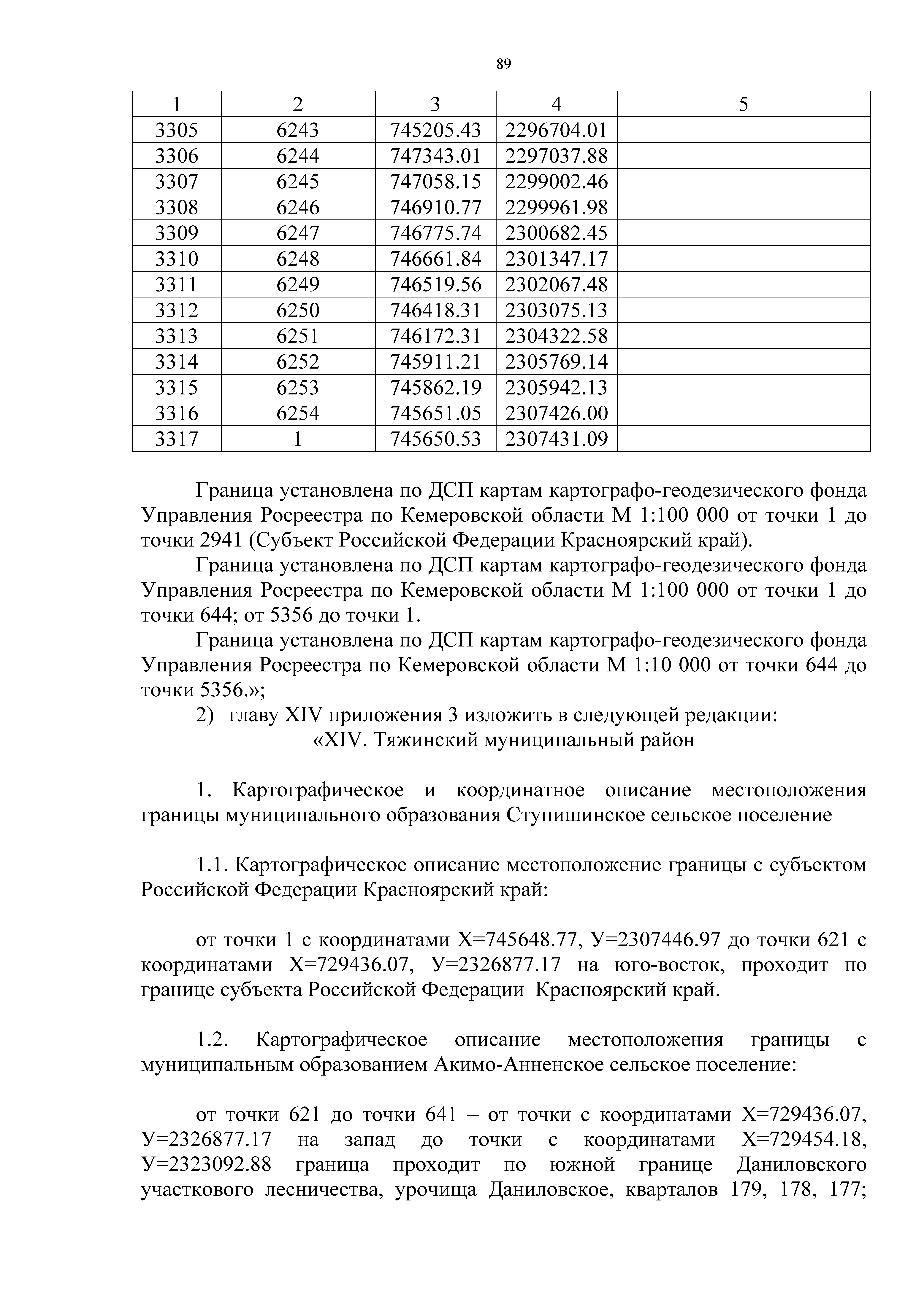 "О внесении изменений в приложения 2 и 3 к Закону Кемеровской области "О статусе и границах муниципальных образований" в части уточнения картографического и дополнения координатного описаний местоположения границы Тяжинского муниципального района и границ городских и сельских поселений, расположенных на его территории"